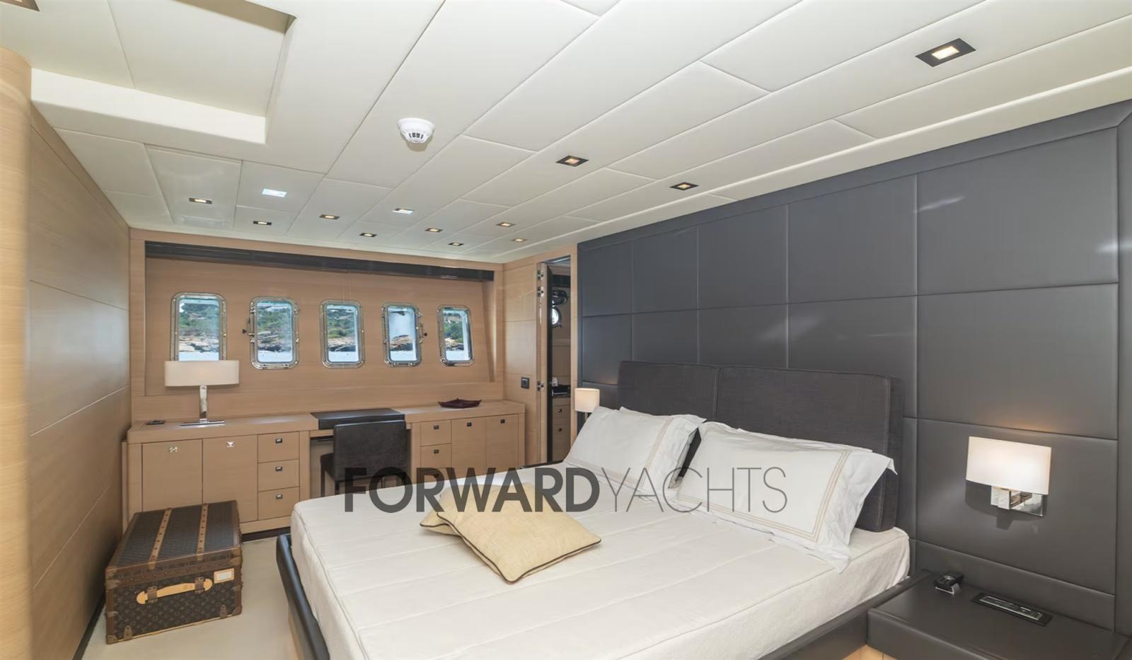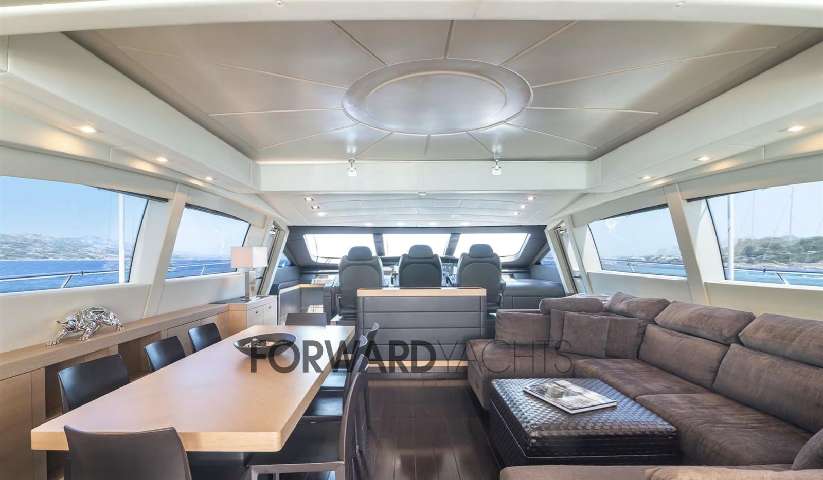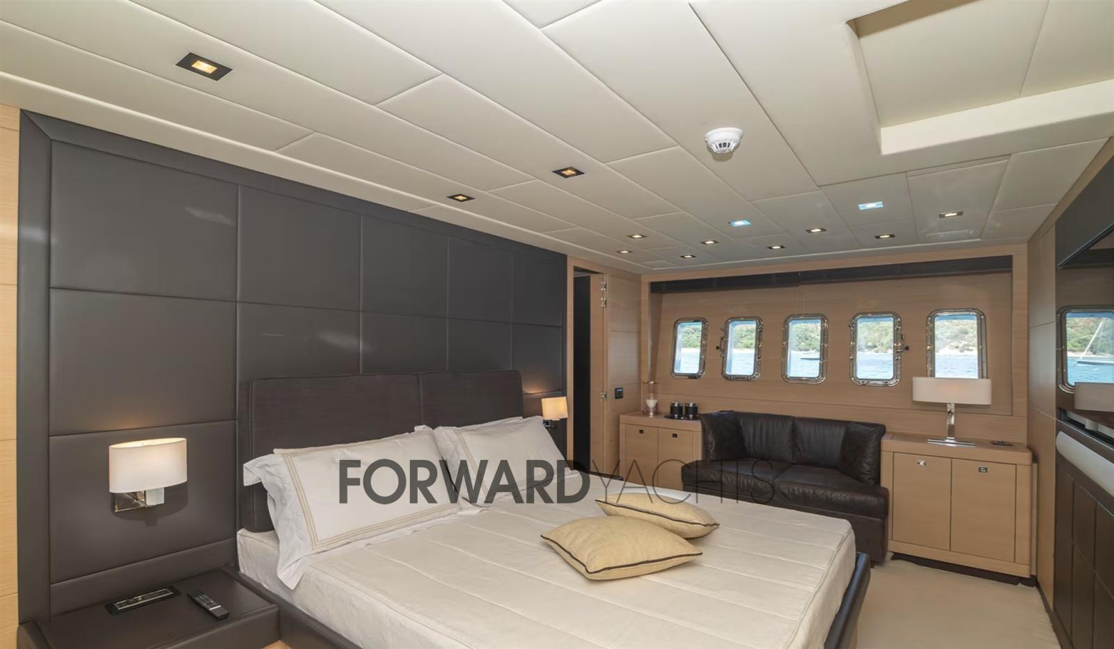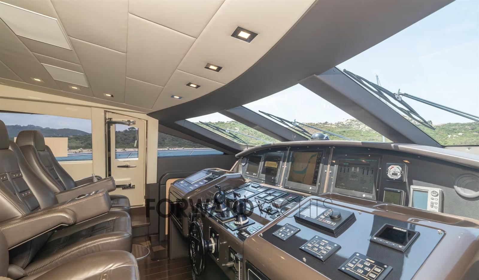 Fume/Gas Detector, Engine Alarm, Bilge Alarm, Water pressure pump, Teak Side Decks, Deck Shower, Twin Steering, Hydraulic Flaps, Tender Garage, Hard top, Fire Extinguishing System, Flaps Indicators, Courtesy Lights, Gangway (Idraulica), Platform (Teak), Automatic Bilge Pump, Side door, Teak Cockpit, Shorepower connector, Water harbor connector system, Voltage Rectifier, Hydraulic Windlass, swimming ladder, Waste Water Purifier System, Tender, 2 Stern Winches.