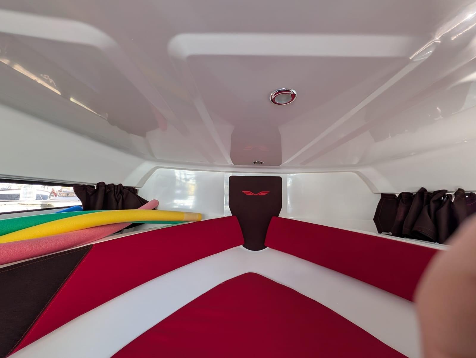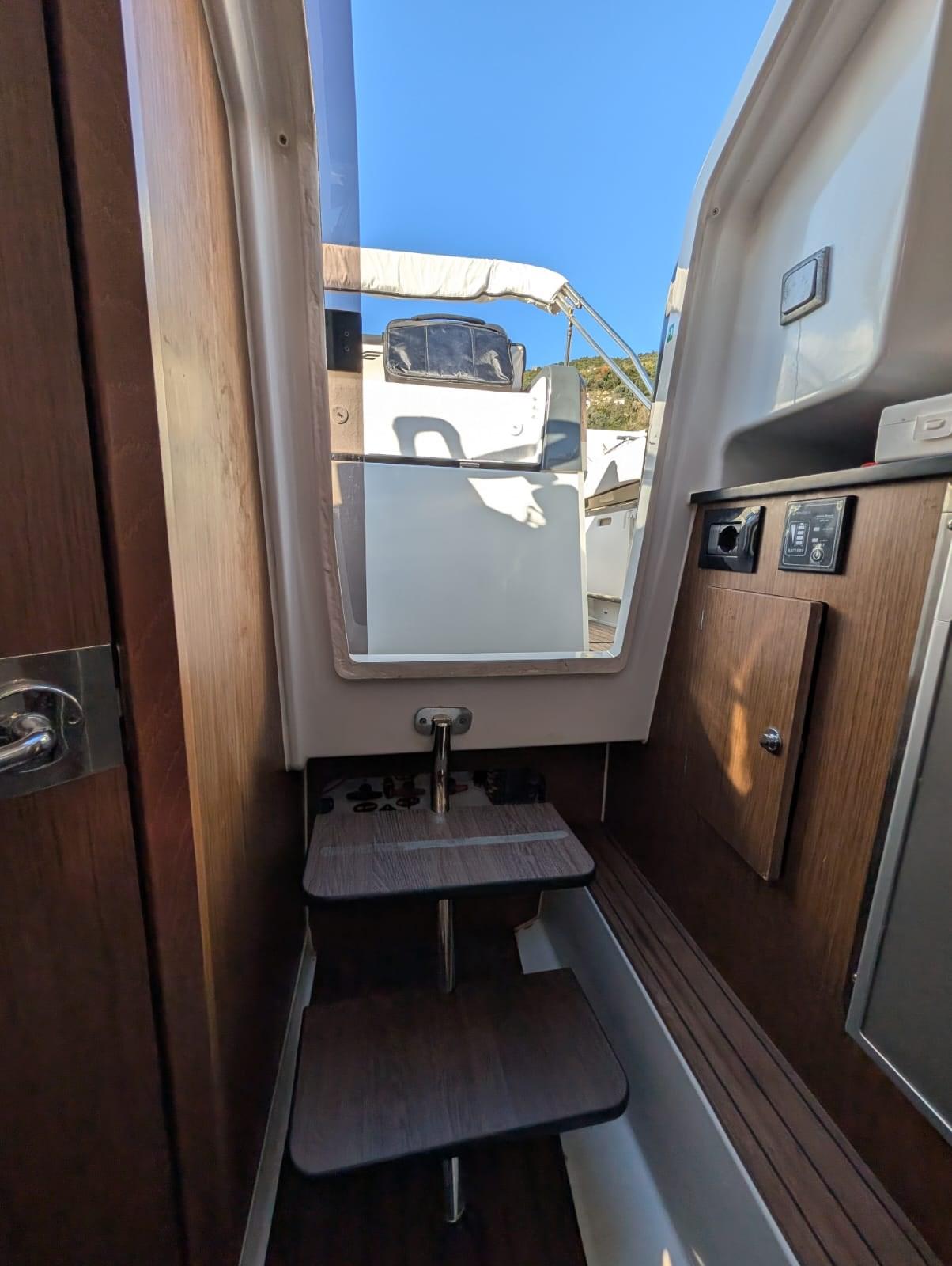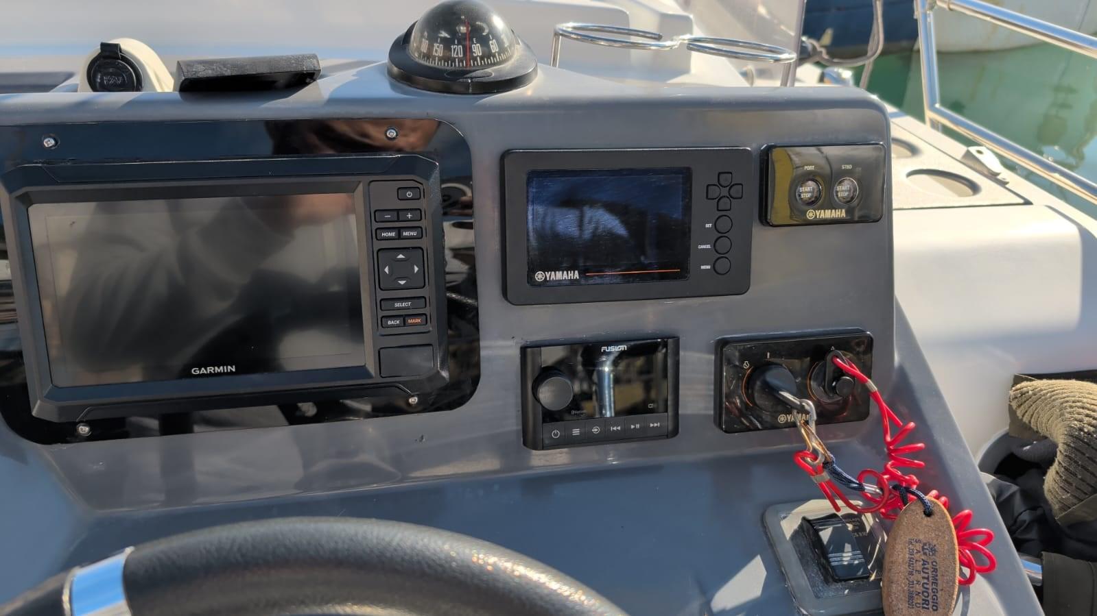 oversized fuel tank 400 lt; consumption at 20/22 knots 40 liters per hour; teak deck and interior; 2 folding benches in the cockpit; hook for water skiing; oversized platforms; electronic handcuffs; 2 sockets el. for fishing reel; 2024 NEW: electric toilet;