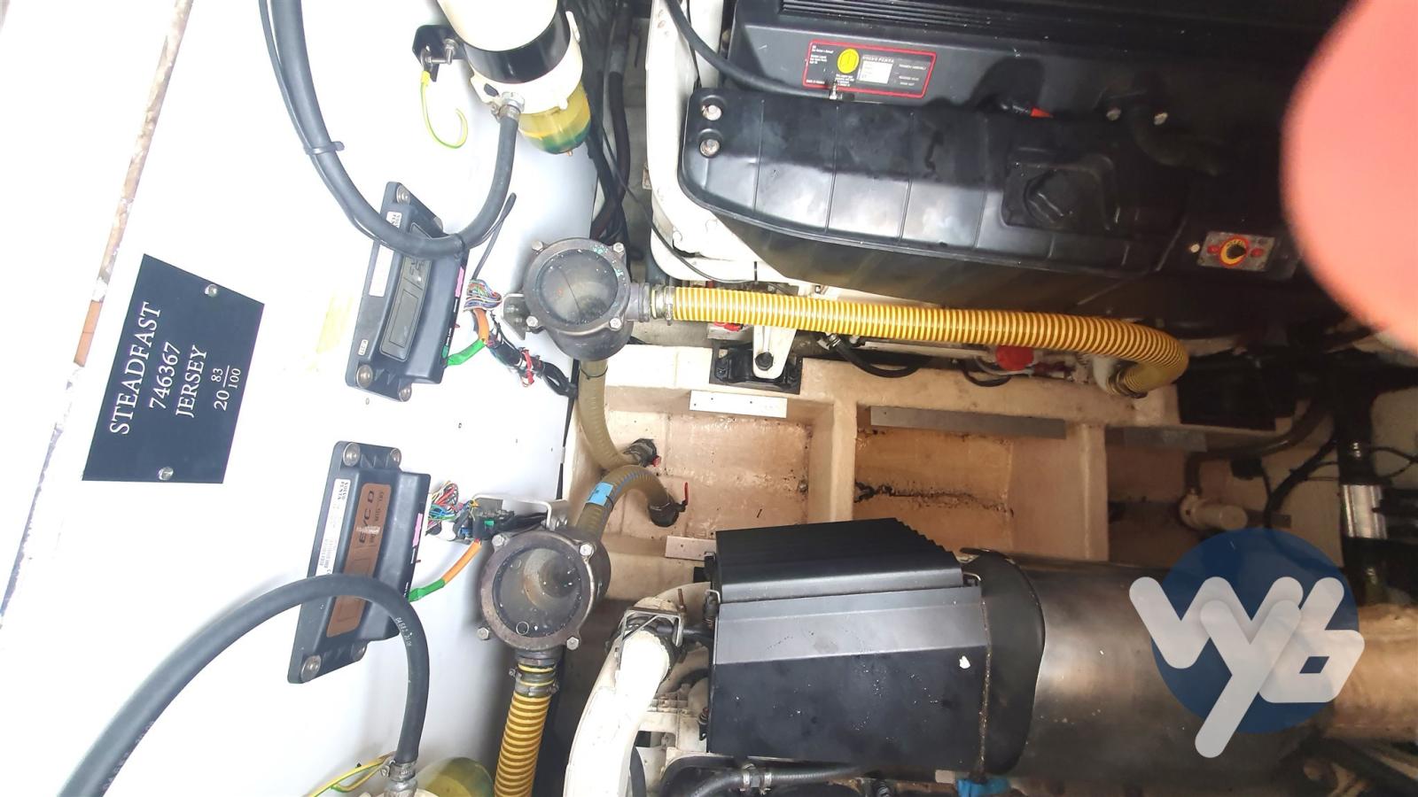 Engine Alarm, Bilge Alarm, Water pressure pump, 5 Batteries, Deck Shower, Directional Spotlight, Electric Flaps, Tender Garage, Fire Extinguishing System, Gangway, Manual Bilge Pump, Entry door, Teak Cockpit, Shorepower connector, Rollbar, Electric Windlass, swimming ladder.