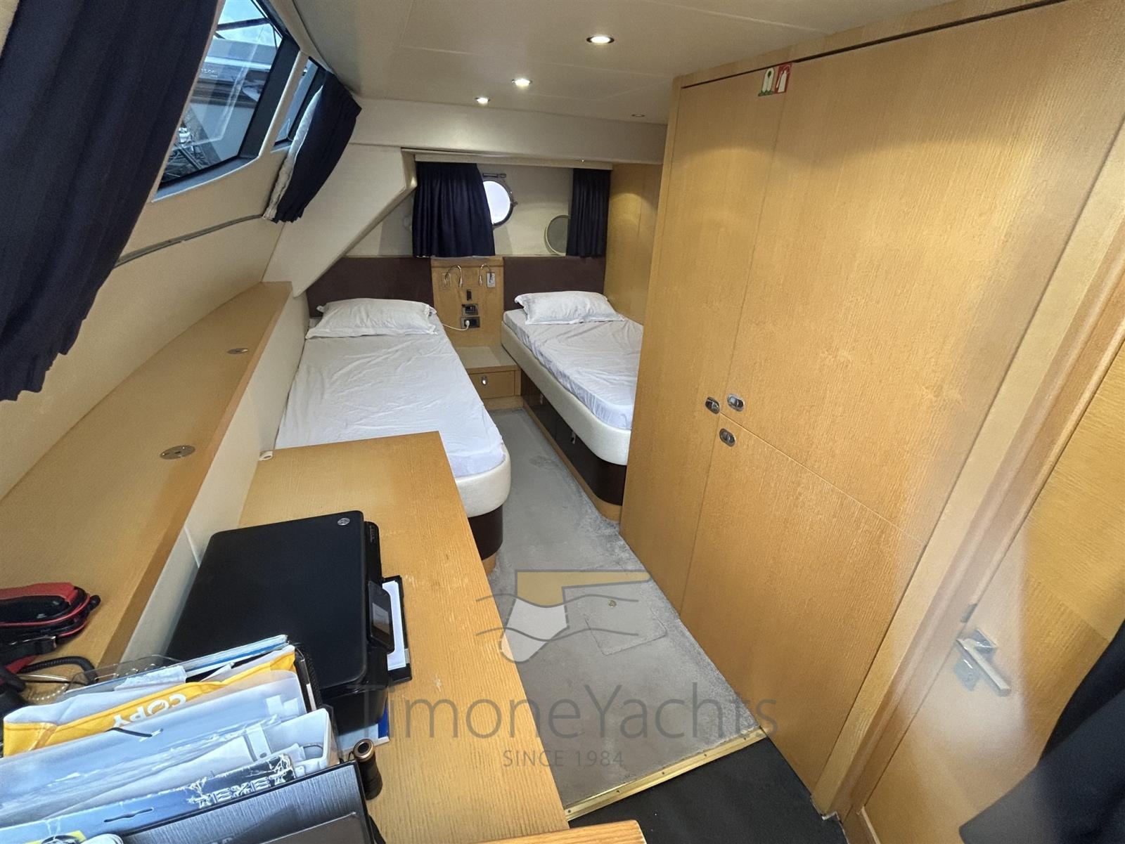 In water 4 months the year only; as good as in cosmetics as in maintenance. Long list of upgrades, revised salon with up/down tv, double mooring winch at bow deck, brand new 4mts tender, underway + zero speed stabilized. Four guest cabins + a fantastic twin beds crew cabin astern (a true fifth cabin). Gorgeous the fly and the bow areas.