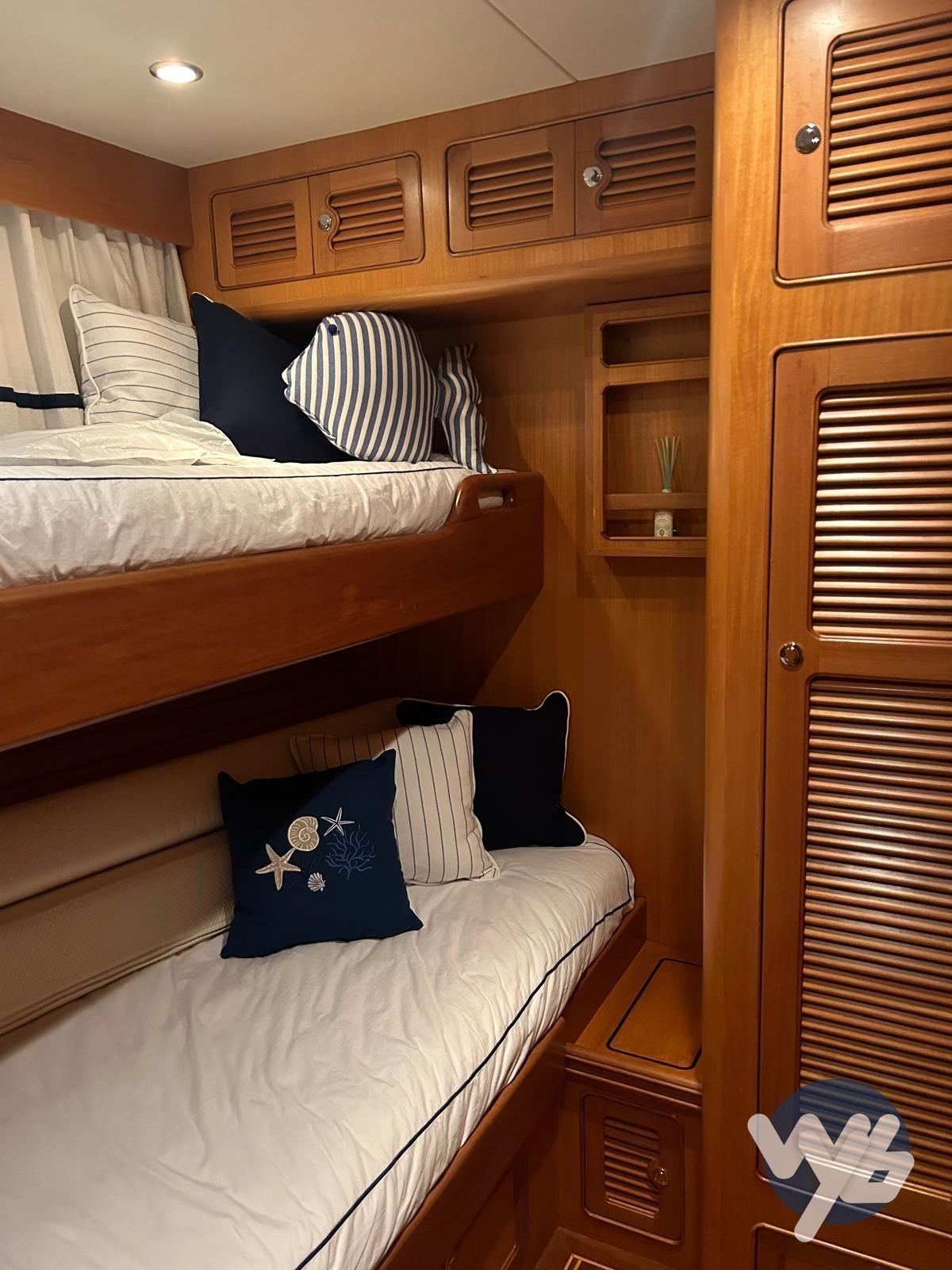 LED lights on the ceiling, in the frame and on the sides of the bed. Natural light through a ceiling porthole and four opening hatches.