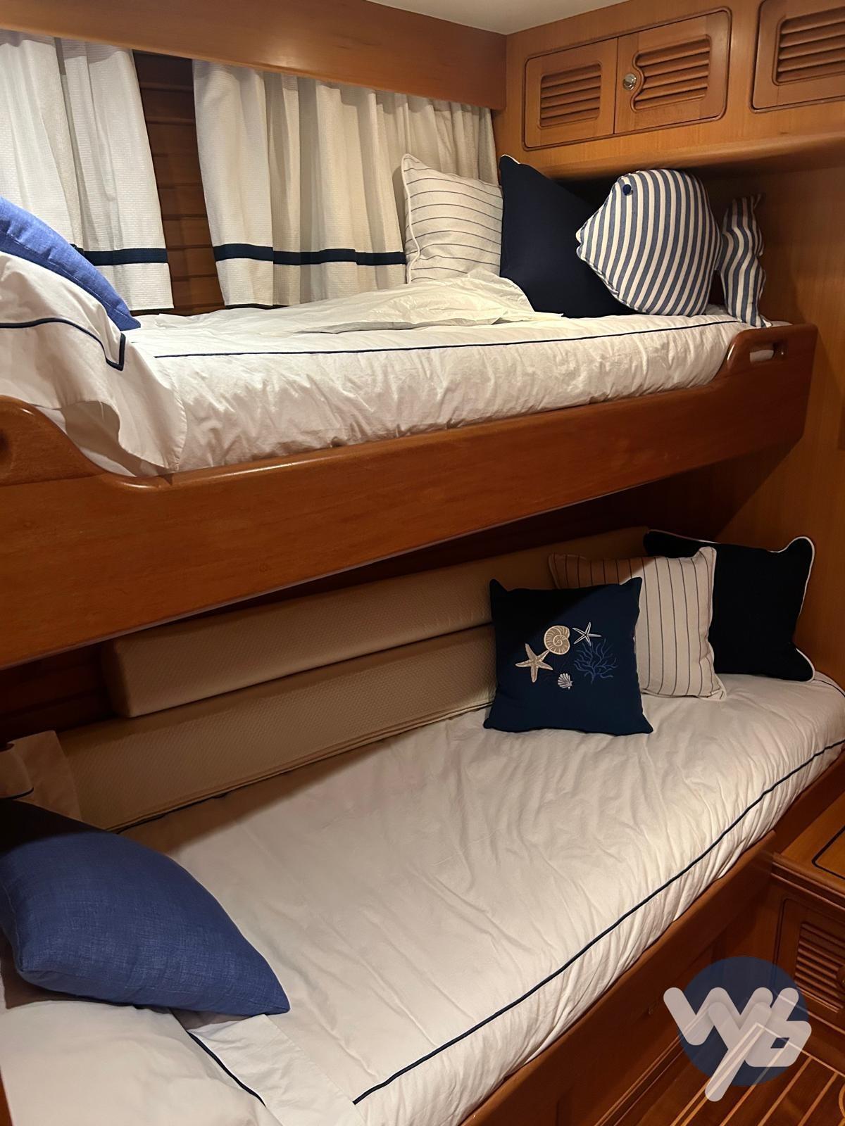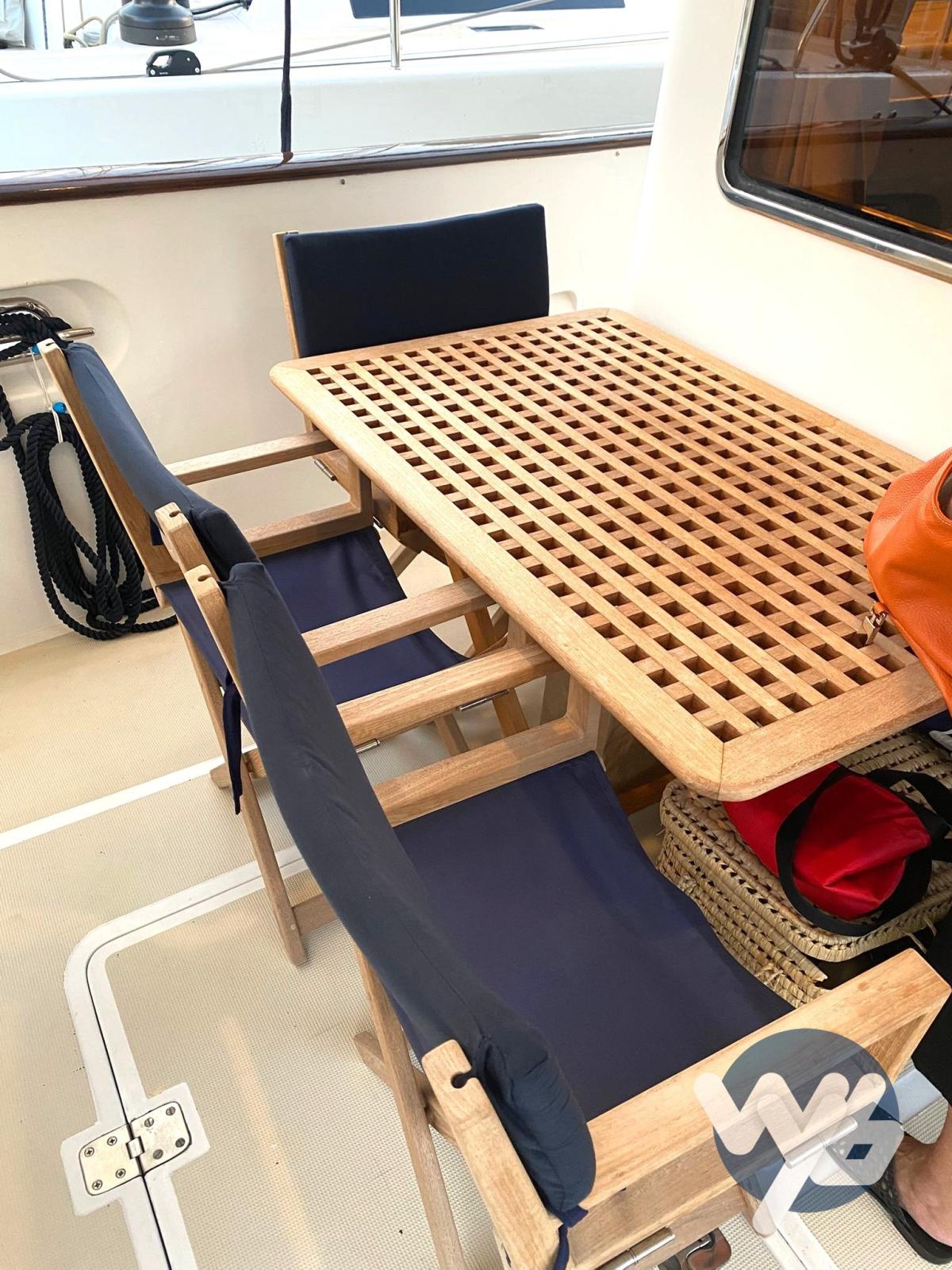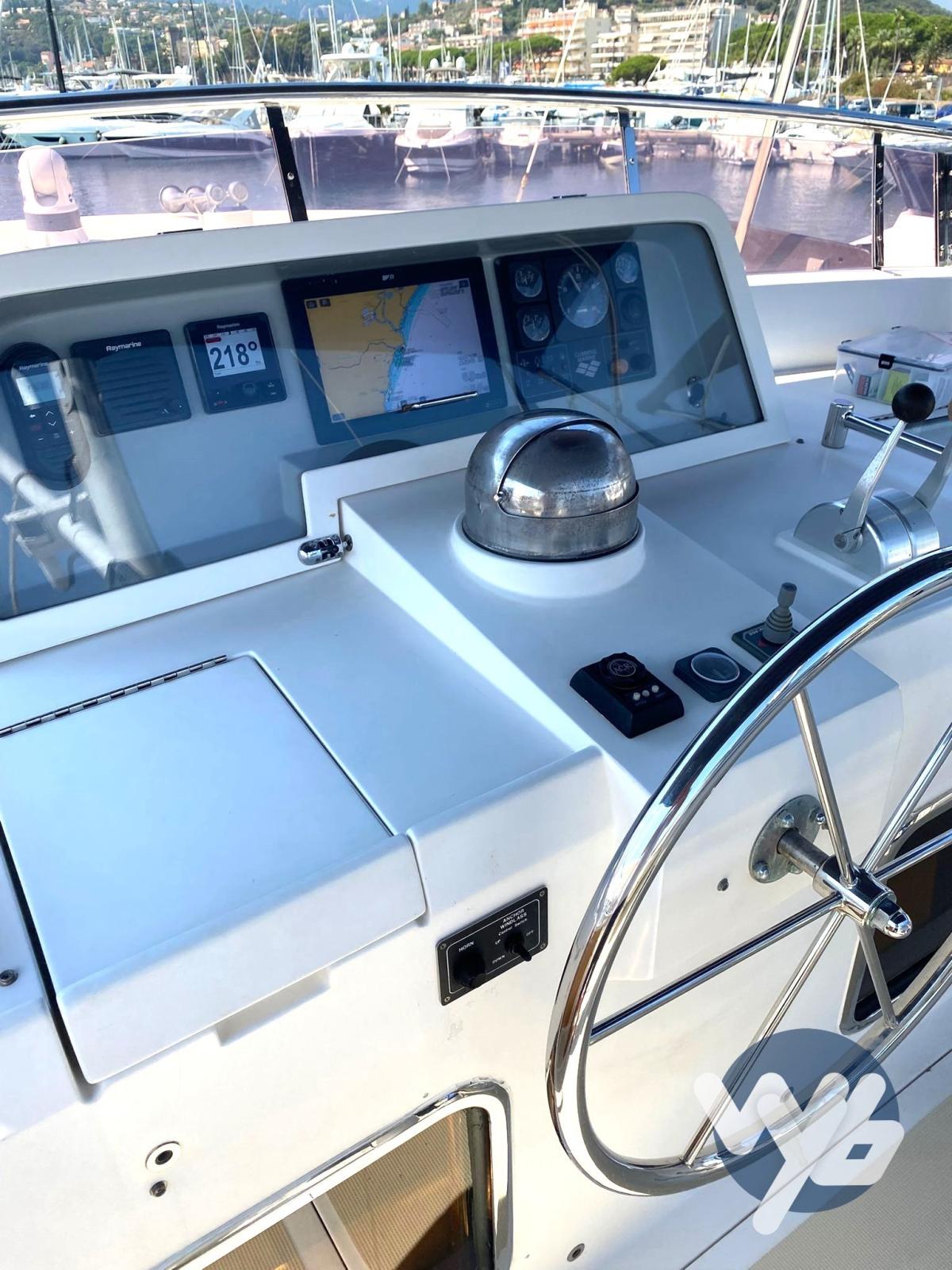 Engine Alarm, Bilge Alarm, Water pressure pump, Deck Shower, Directional Spotlight, Fire Extinguishing System, Gangway, Manual Bilge Pump, Entry door, Side door, Shorepower connector, Water harbor connector system, Electric Windlass, swimming ladder, cockpit table, Tender.