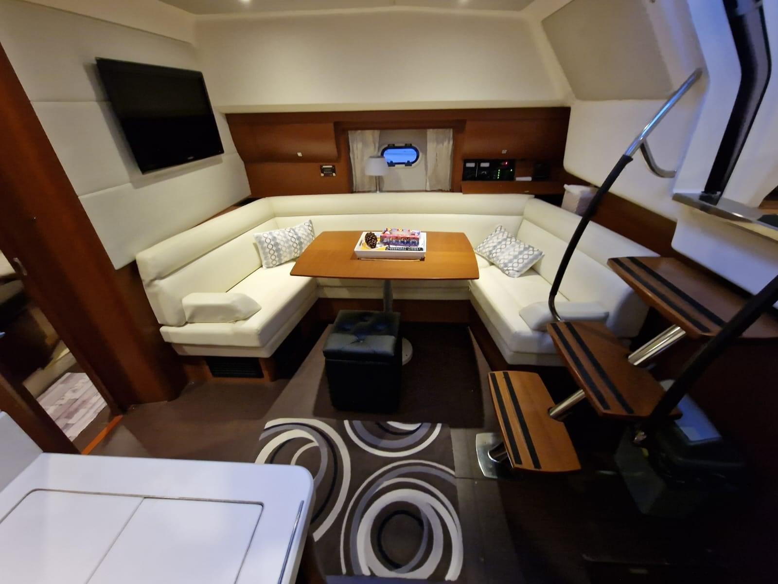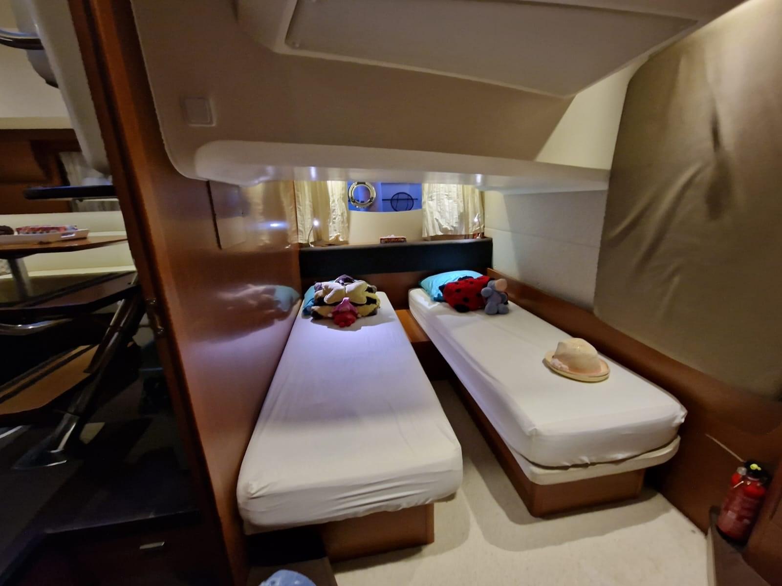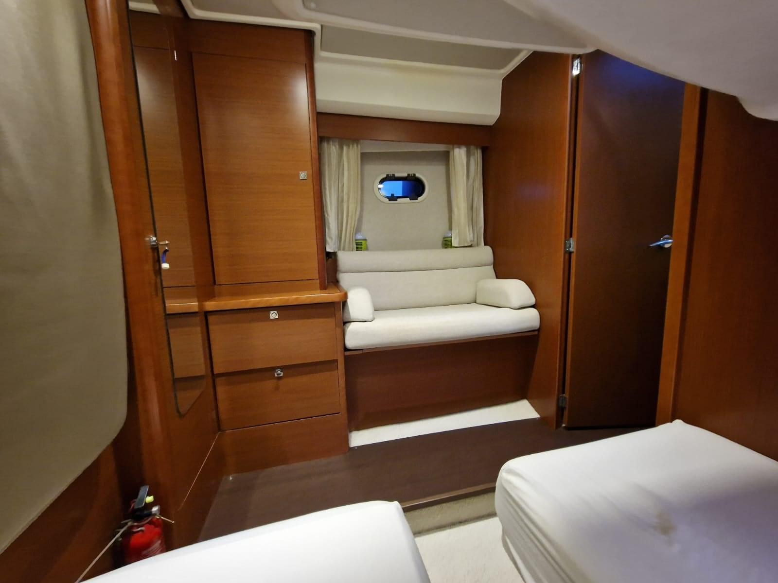 It offers a beautiful interior volume, with two cabins, one double and one twin and a bathroom.