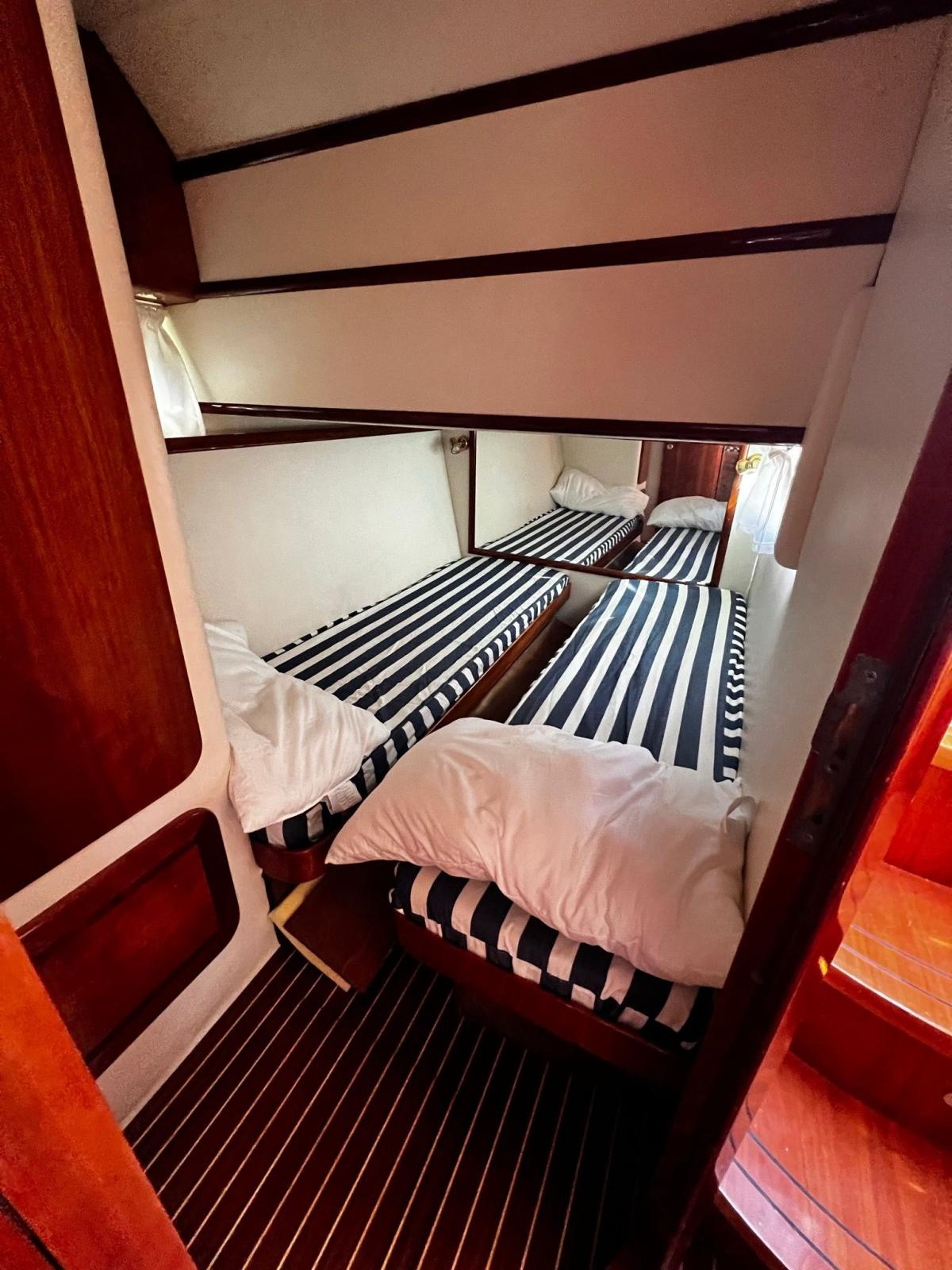 New battery wiring, left foot overhaul, blue LED cockpit lights, new sonar transducer, new 1500 W stereo system, bow and stern external cushions + bridge seat all new 2023, Piooner radio with amplifier, new Raymarine GPS, windlass service, dashboard panel + buttons all new, new gangway remote controls + control unit + new hydraulic lines + solenoid valves, new batteries 2023, new bilge pumps + 1 stripped, 220 V sockets in the bedrooms, new mattresses in the bedrooms, new bow and stern awning, new central curtain structure, new shower + pipes, new 220 V connection, new remote gangway, new 32-inch TV, luicidation September 2023
