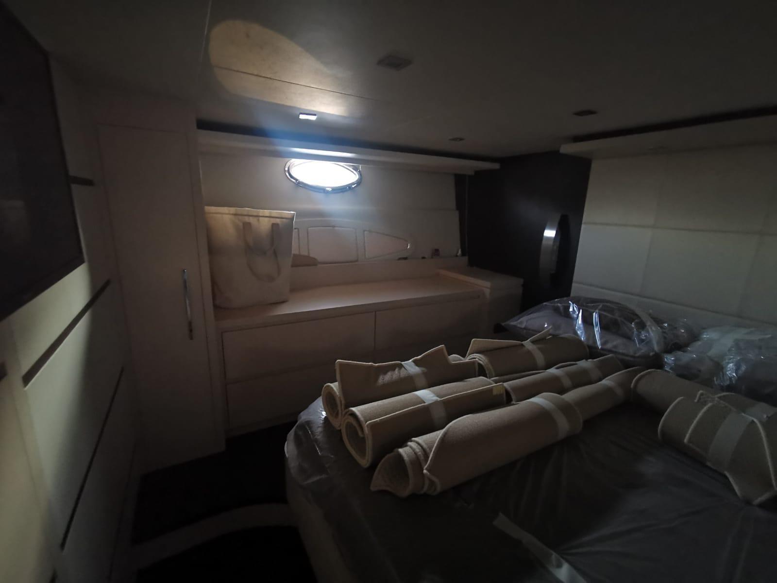 Engine Alarm, Bilge Alarm, Alternator, Water pressure pump, Teak Side Decks, Deck Shower, Hydraulic Flaps, Hard top, Fire Extinguishing System, Flaps Indicators, Washbasin in the cockpit, Underwater lights, Gangway, Platform, Automatic Bilge Pump, Manual Bilge Pump, Teak deck, Entry door, Teak Cockpit, Shorepower connector, Water harbor connector system, Electric Windlass, swimming ladder, Saddles for tender, cockpit table, Bow Winches.