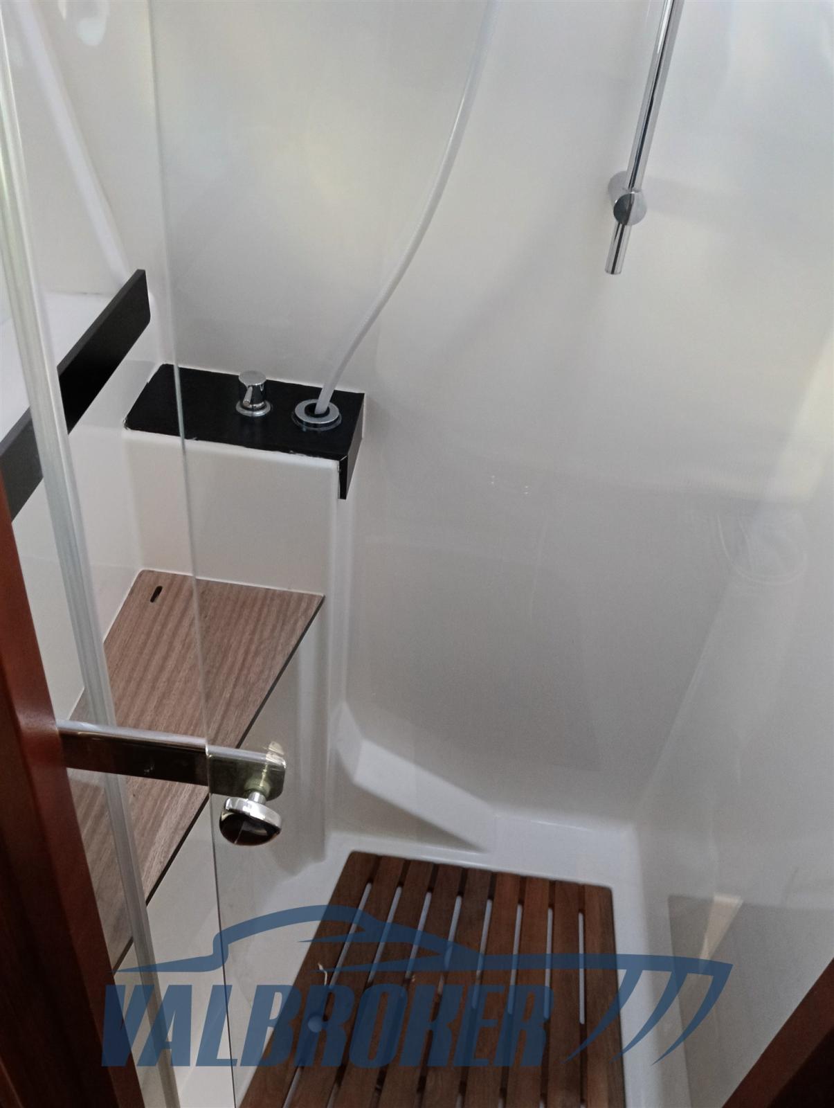 Engine Alarm, Water pressure pump, 3 Batteries, Deck Shower, Twin Steering, Bow Thruster (Side Power), Directional Spotlight (Osculati), Electric Flaps, Flaps Indicators (Bennett), Courtesy Lights, Gangway (teak), Platform (teak), Automatic Bilge Pump, Entry door, Teak Cockpit, Shorepower connector, Electric Windlass, swimming ladder, cockpit table, Living Room Foldable Table, guard rails with gates, Horn, 3 Winch Electric, Stern Winches, Bow Winches.