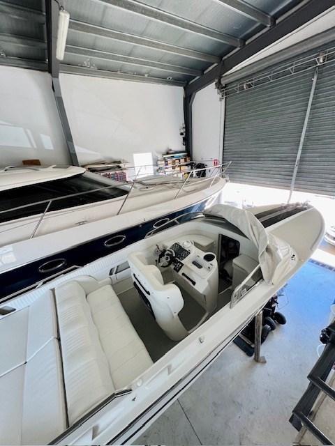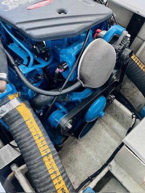 This MC30 is equipped with two 375 hp Crusader V8 engines. these are considerably lighter and more powerful than the more popular Mercruiser gas engines (which are also used in most Riva Aquarama).