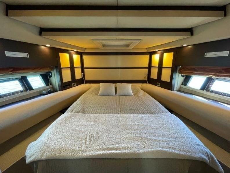 Teak Side Decks, Deck Shower, Tender Garage (achtern), Hard top (zum öffnen), Gangway (hydraulisch), Platform (Badeplattform hydraulisch), Manual Bilge Pump, Teak Cockpit, Shorepower connector, swimming ladder, cockpit table.
