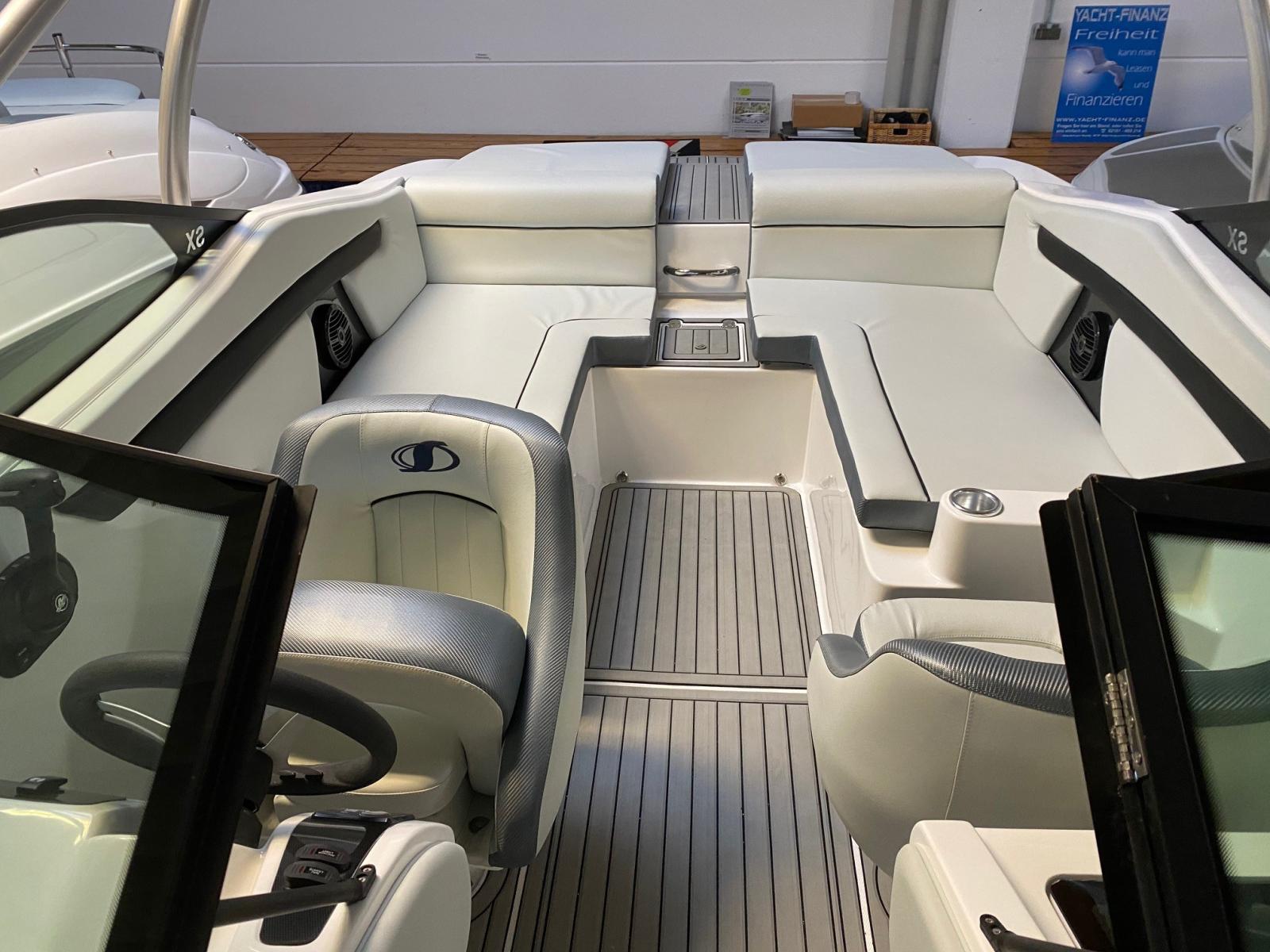 Sensation SXI with a Mercruiser inboard engine with 350 hp and the matching Vanclaes trailer.