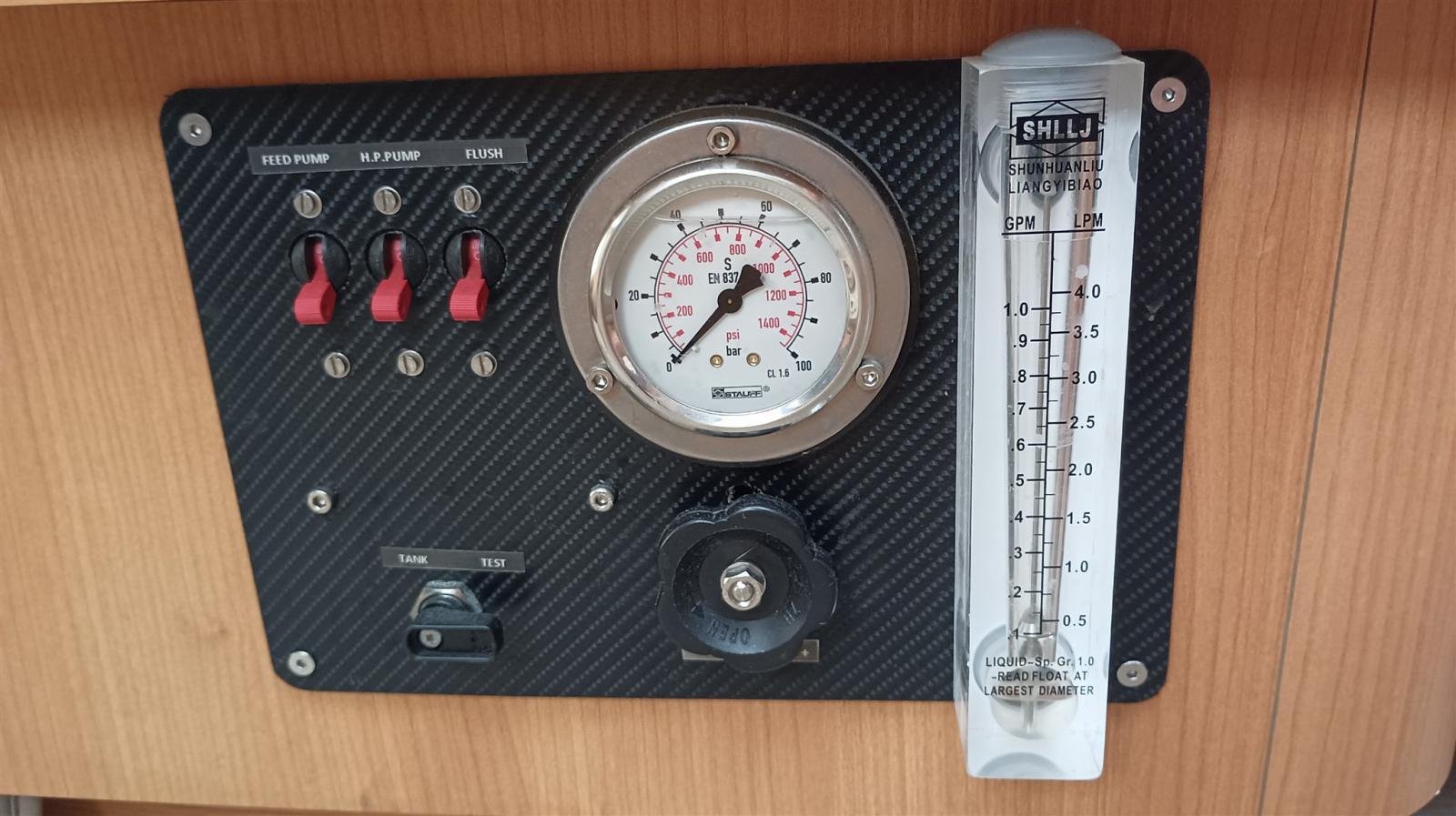 AIS (ICOM), Rudder angle indicator, Odometer (RAYMARINE i40), Depth Sounder (RAYMARINE i40), GPS (RAYMARINE Axiom 9), Log (RAYMARINE i40), Autopilot (RAYMARINE i70), Chartplotter (RAYMARINE Axiom 9), VHF Radio (ICOM M506).