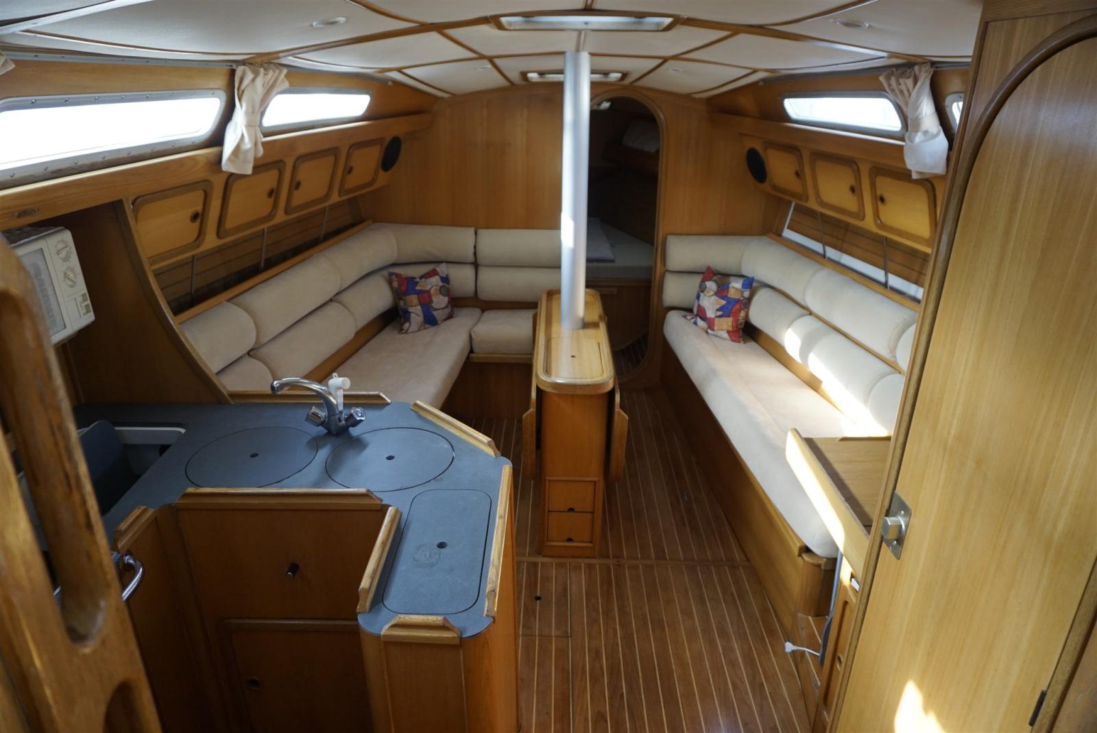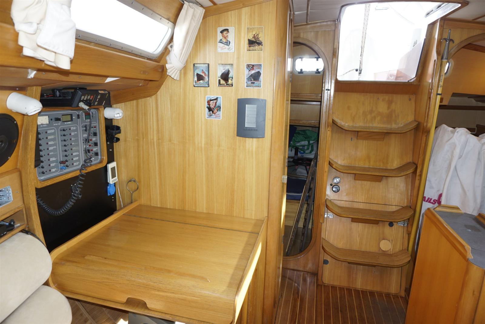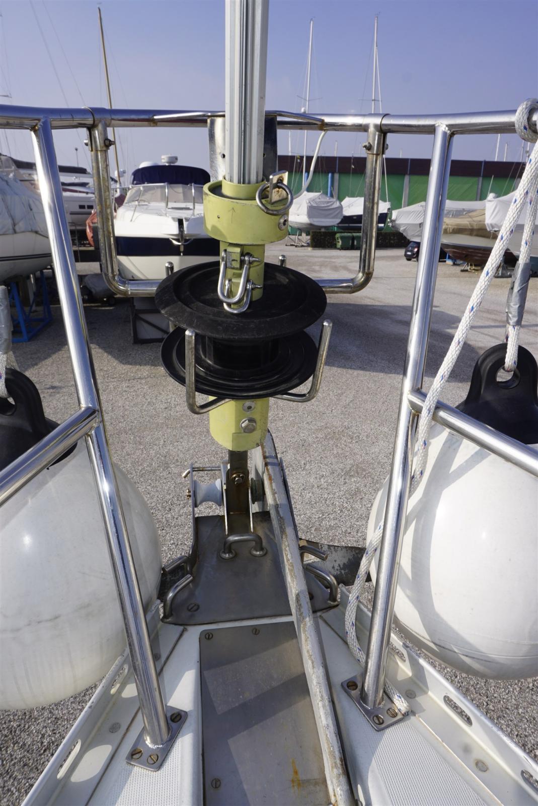 Deck Shower, cradle, Outboard engine for tender (2 hp), Solar panels, Gangway, Manual Bilge Pump, Teak Cockpit, Shorepower connector, Manual Windlass, swimming ladder, Tender, Windex.