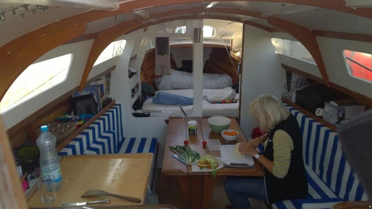 THEA is a modern (1980!) Cowrie wood/epoxy construction, outer skin already coated with glass fiber/epoxy during construction - built in New Zealand. New Selden mast 2012, new Elvström self-tacking jib 2017, batten gross sail manufactory 2020 (fathead - tree shortened to targa bracket), AIS transponder. Rudder partially balanced (self-made according to Nissen crack), as good as new interior changed in 2015. Targabügel - german mainsheet.
