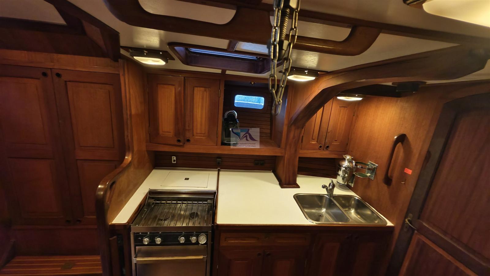 Galley, Burner, Oven (1 Flamme defekt), Mechanical Refrigerator.