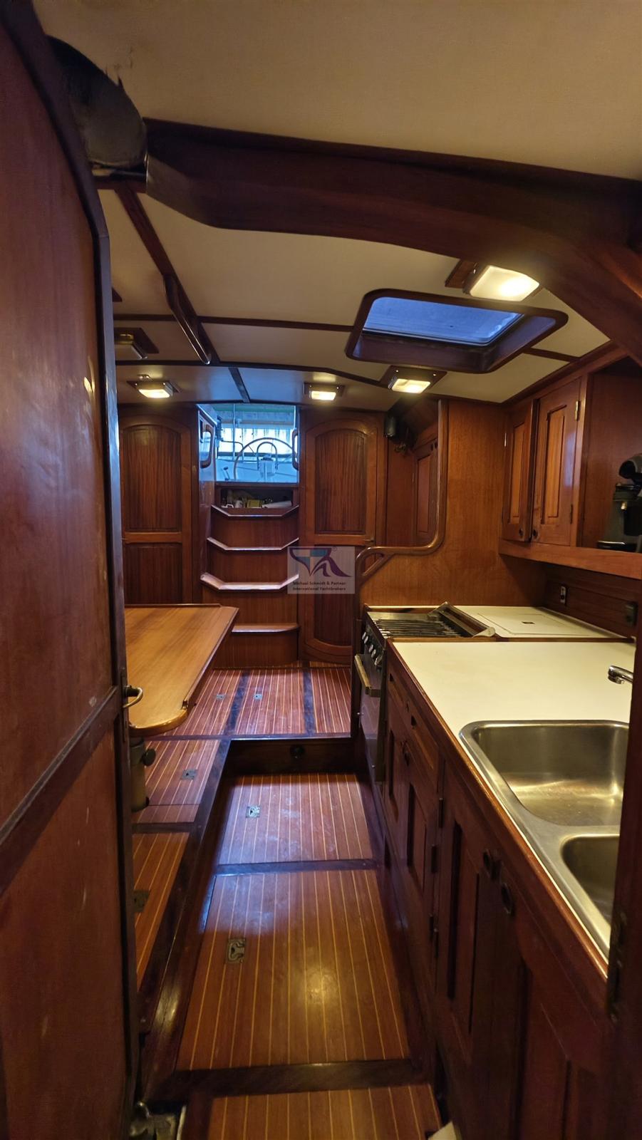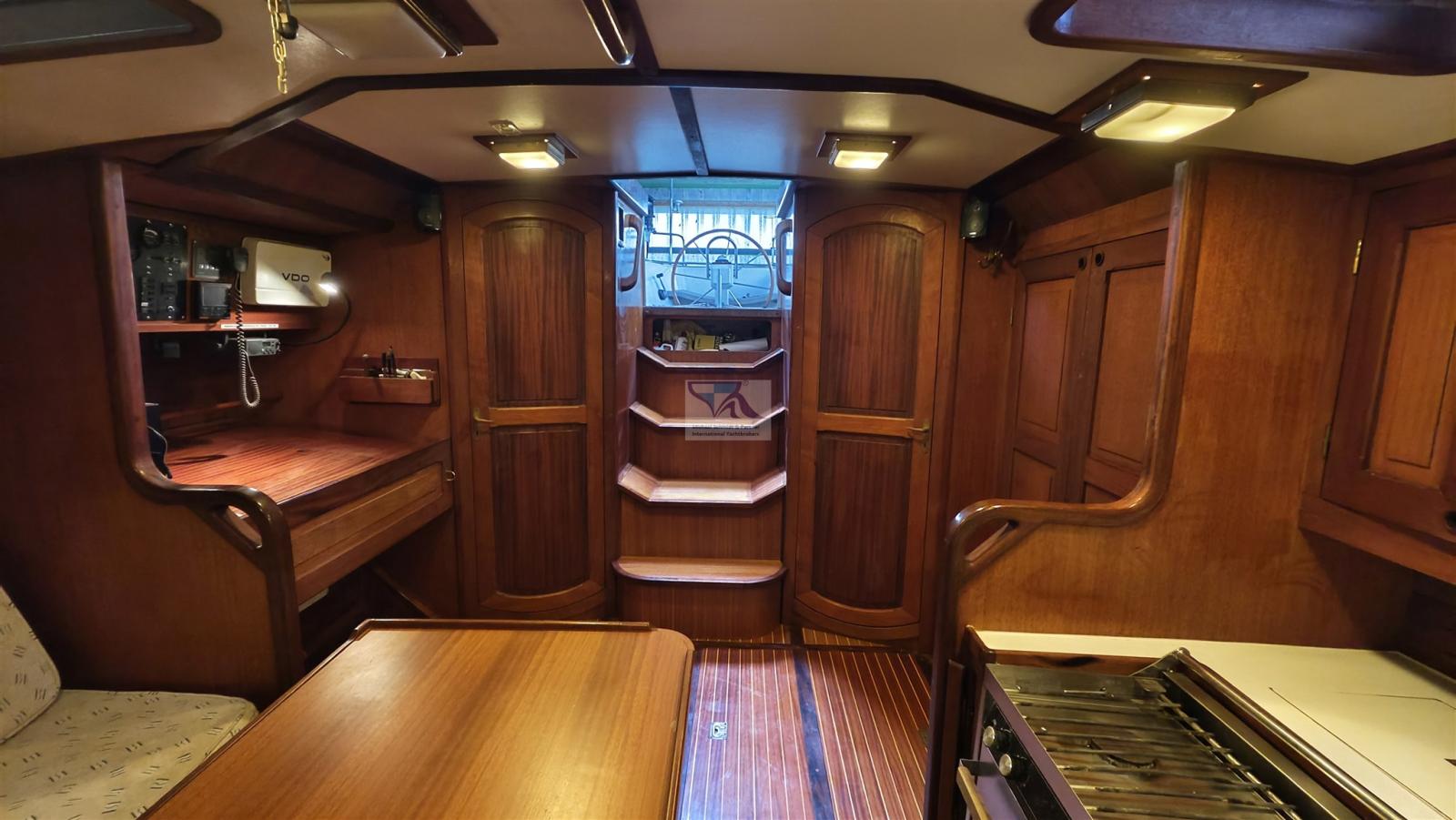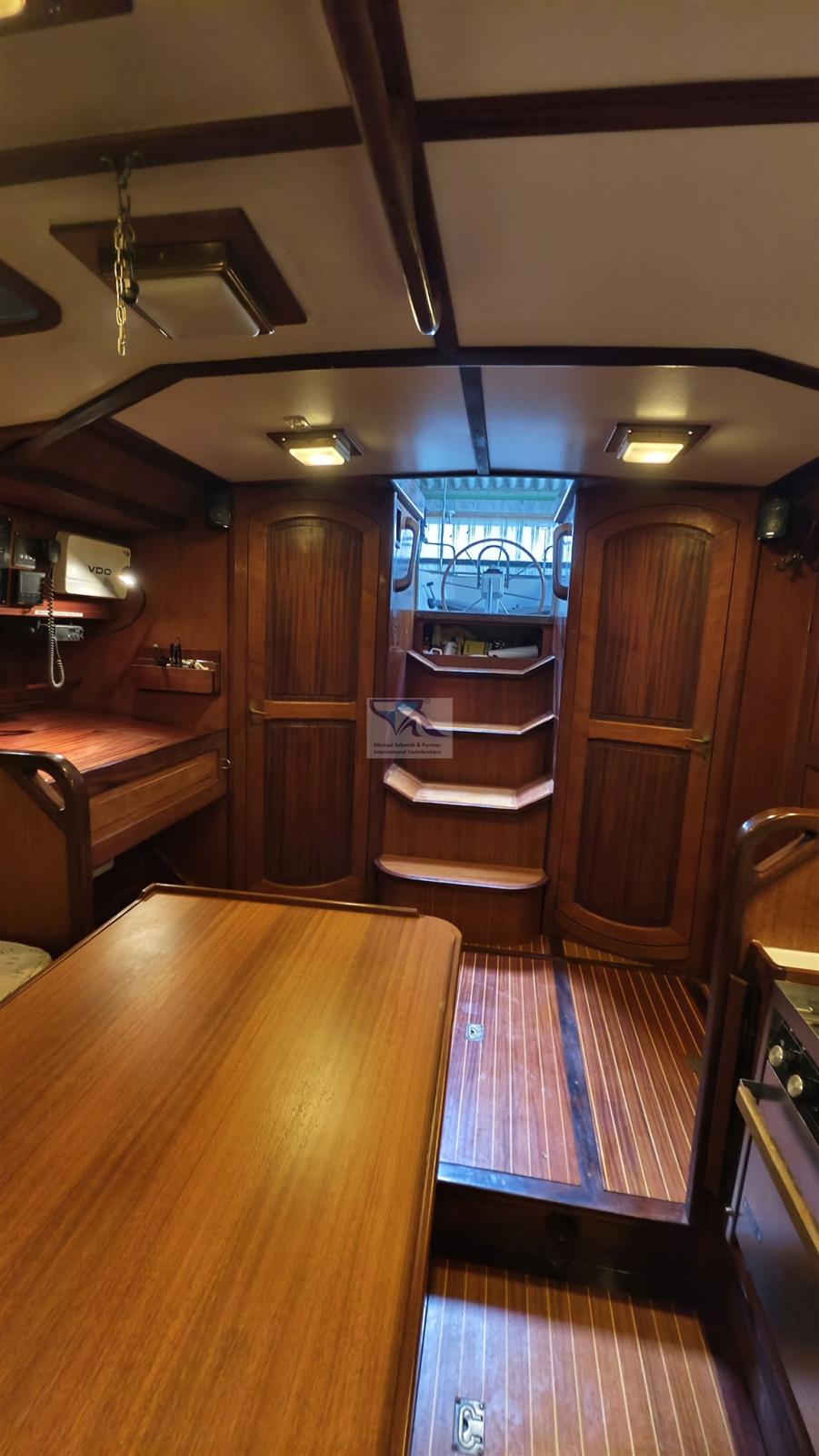 The legendary Feltz aluminium one-tonner: Kühnezug Goldkatze 41 was converted into a smart cruising yacht inside in 1992. On the outside, the look of a racing yacht has been preserved, as has the rig, so the sailing characteristics are still impressive.