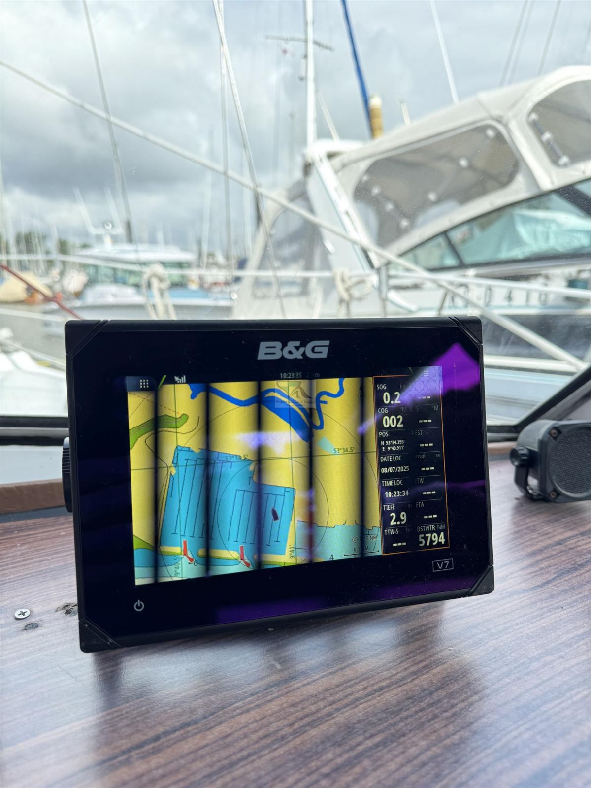 Depth Sounder (B&G Airmar DST 810 Neu 2025), Log (B&G Airmar DST 810 Neu 2025), Autopilot (Raymarine), Chartplotter (B&G Vulcan 7 aus 2016), VHF Radio (B & G V50 auf VDES 2024 umprogrammiert, Kabel und Antenne neu 2017)), Wind Station (B&G aus 2017).