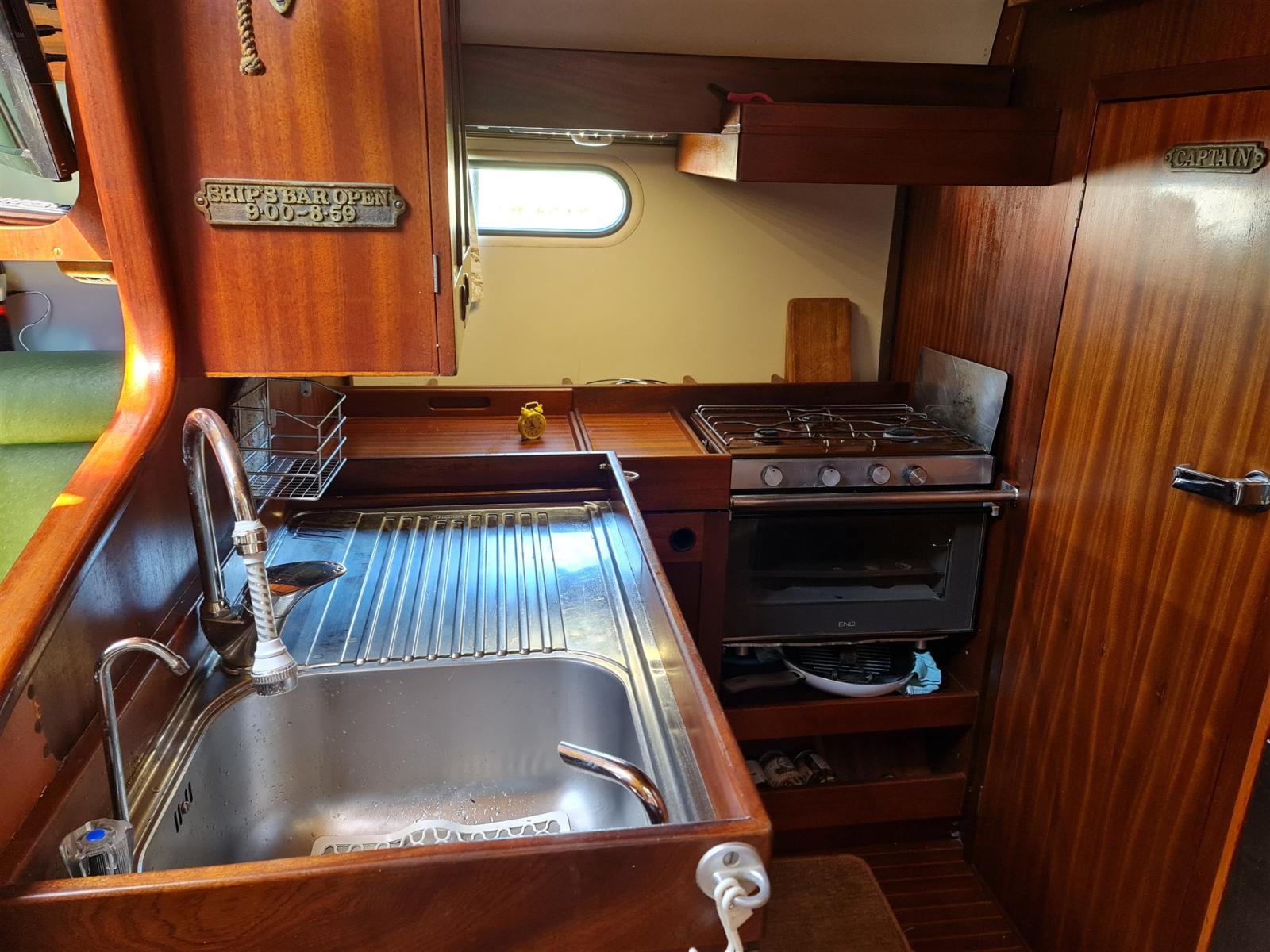 Galley, Burner, Deck Refrigerator, Icebox.