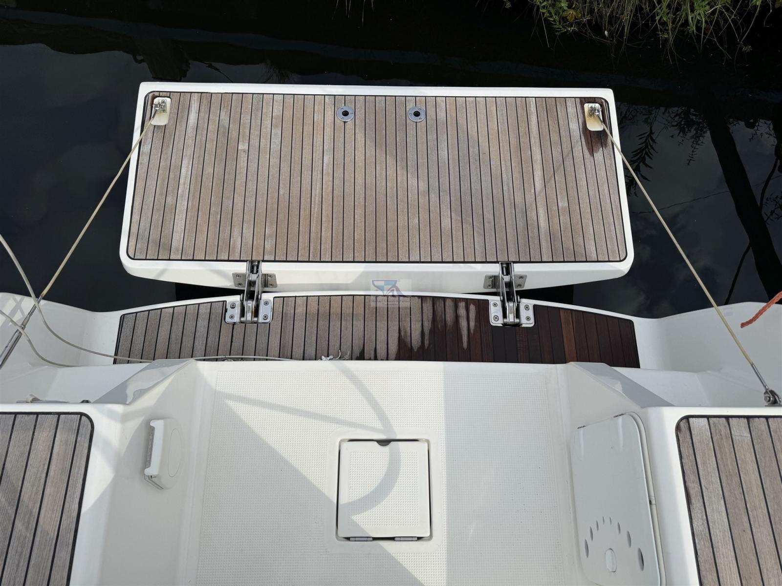 Anchor (und Kette 30m), 2 Batteries (Starter- und Service (120Ah)), Shore power cable, Deck Shower, Fenders, Platform (in Teak), Manual Bilge Pump, Teak Cockpit, Shorepower connector, Electric Windlass (Neu 2024), Strand rigging, Gang Board, swimming ladder, cockpit table, 3 Winch (LEWMAR), Windex (Garmin).