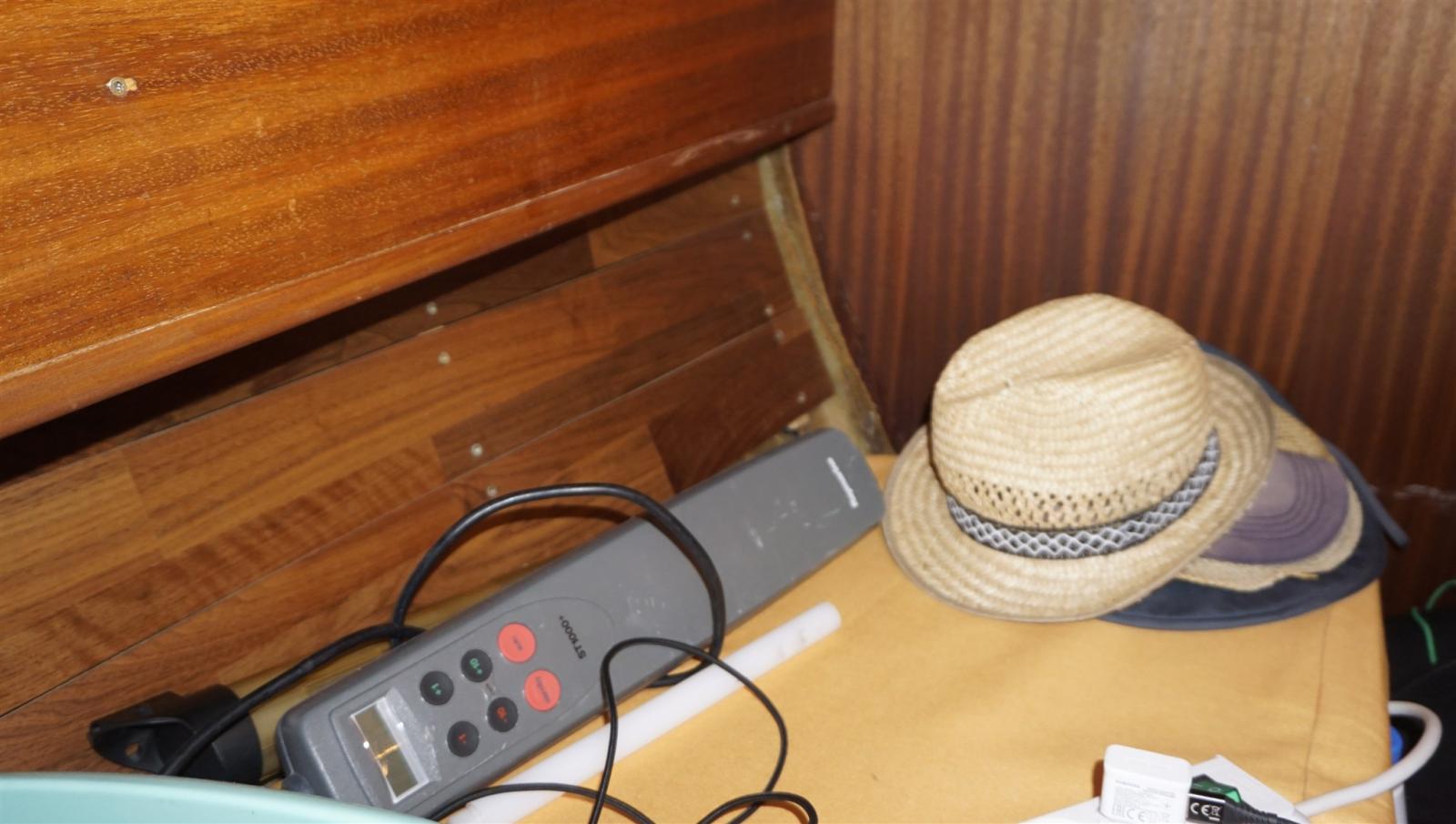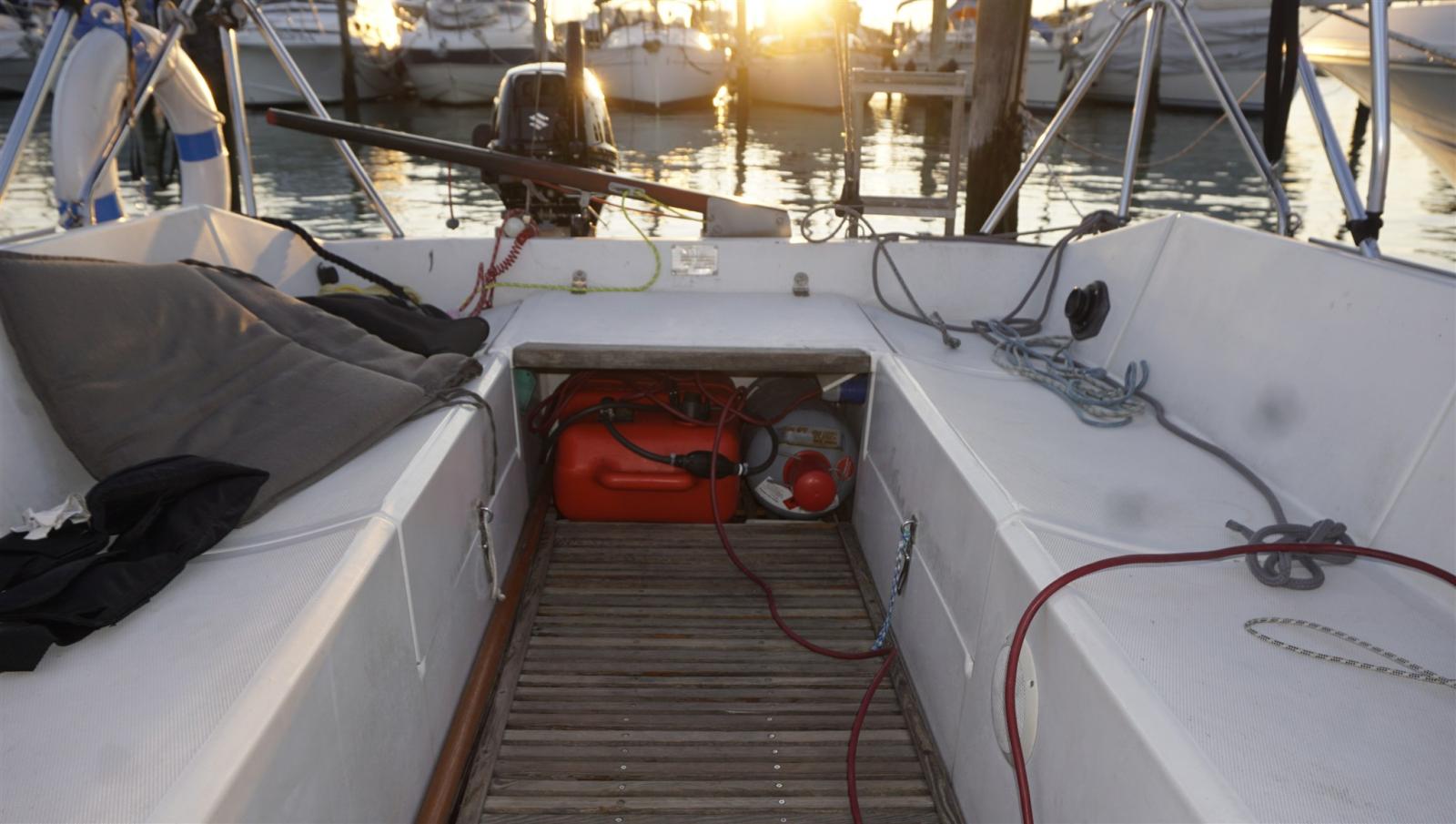 Anchor (DANFORTH 70 m rope), Batteries (75 Ah + 100 Ah), Trailer (2,5 t), Solar panels (120 W), Fenders, Gangway, swimming ladder, Windex.