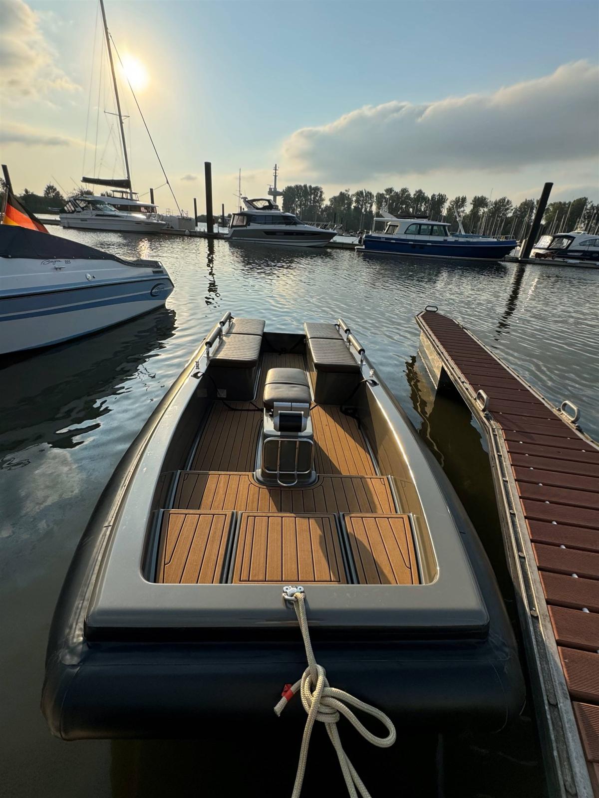 The boat was originally designed for tender garages on larger sailing yachts and is characterized by a particularly small pack size and low weight. The catamaran hull offers a high level of stability, especially when getting in and out.