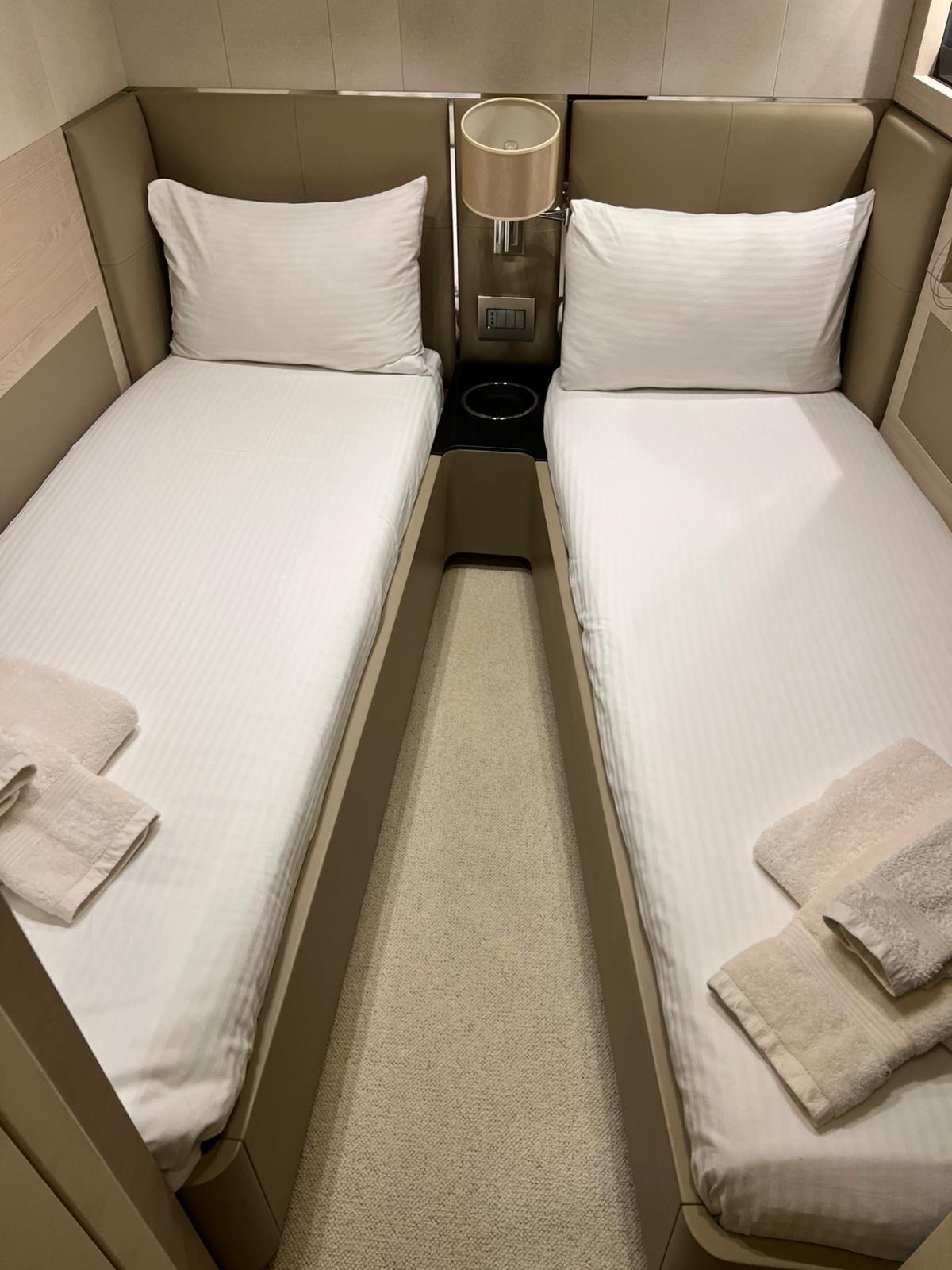 Very well maintained Yacht with lots of additional equipment with four cabins in total: a master cabin, a VIP cabin, one double cabin, and one twin cabin, complemented by four bathrooms and 2 skipper cabins