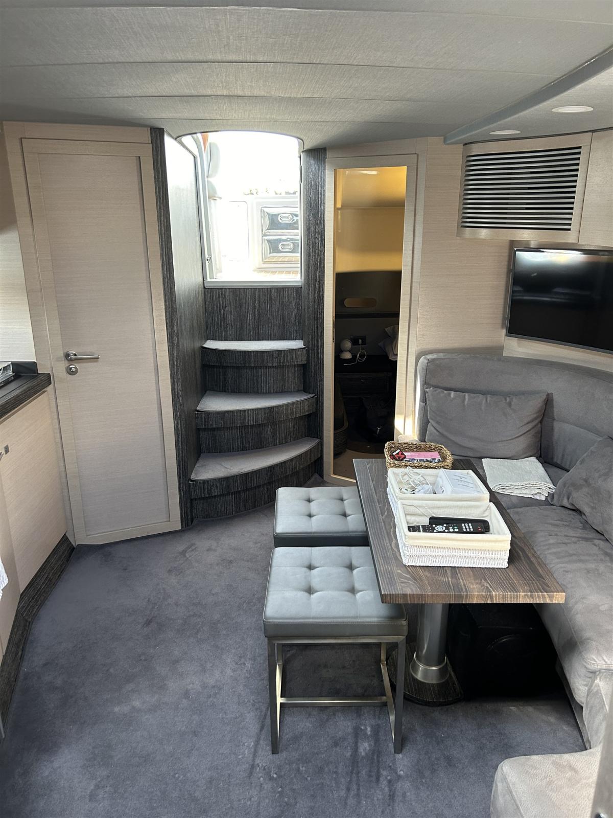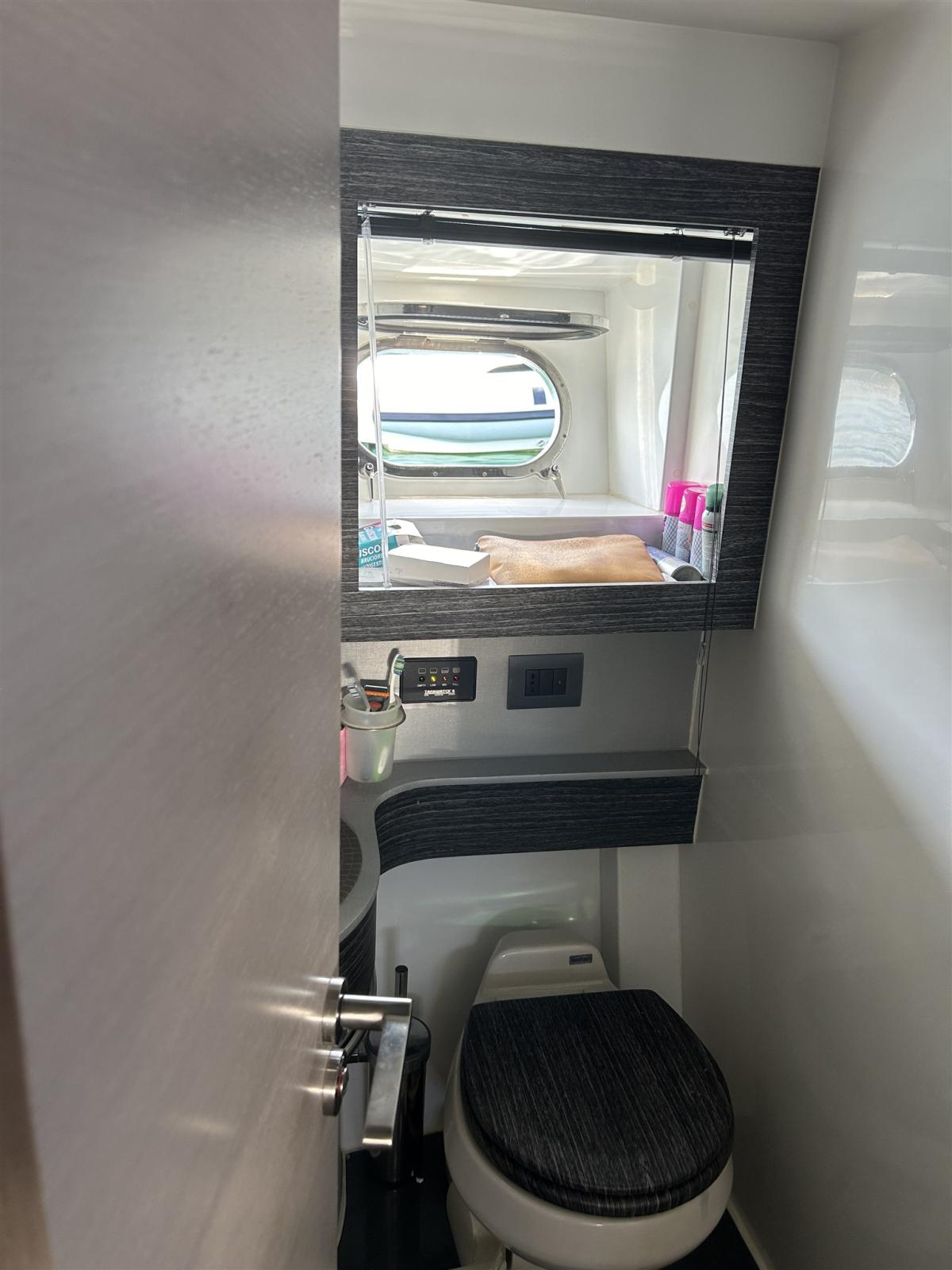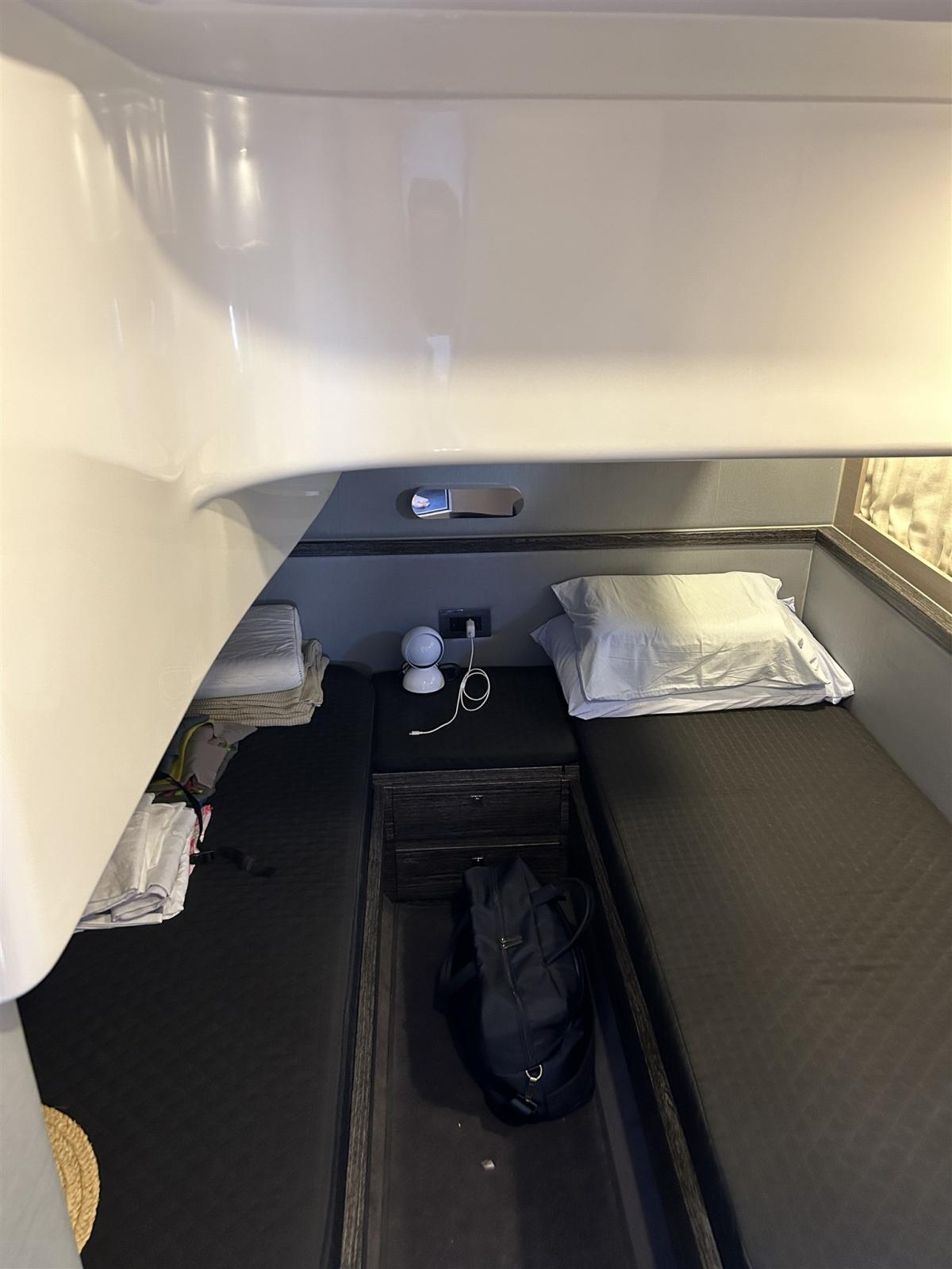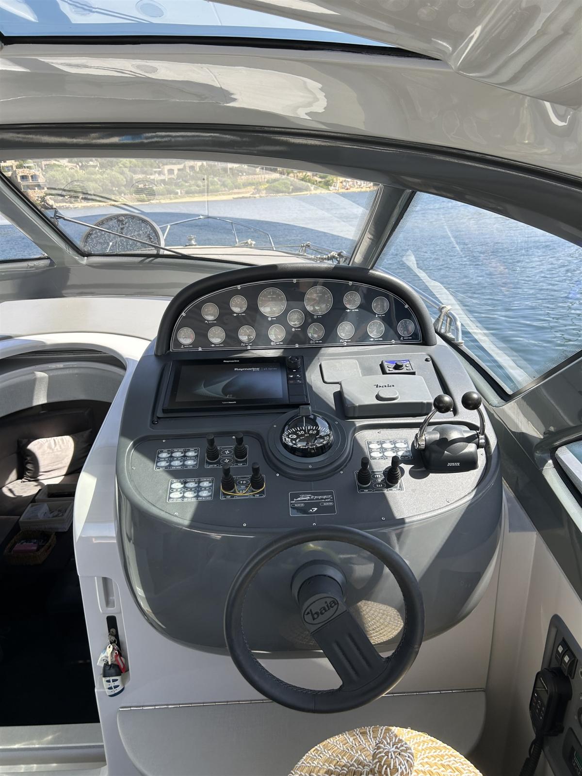 Fume/Gas Detector, Engine Alarm, Bilge Alarm, Electric Engine Compartment Opening (Elettricoidraulico), Auto Dynamic Trim Interceptor, Water pressure pump, Special Colour (Grey), Deck Shower, Hydraulic Flaps, Hard top, Fire Extinguishing System, Flaps Indicators, Washbasin in the cockpit, Courtesy Lights, Gangway (Idraulica a scomparsa), Platform, Automatic Bilge Pump, Manual Bilge Pump, Entry door, Teak Cockpit, Shorepower connector, Voltage Rectifier, Electric Windlass, swimming ladder, Saddles for tender (in plancetta), Waste Water Purifier System, cockpit table, Tender (3 MT chiglia in alluminio), Horn.