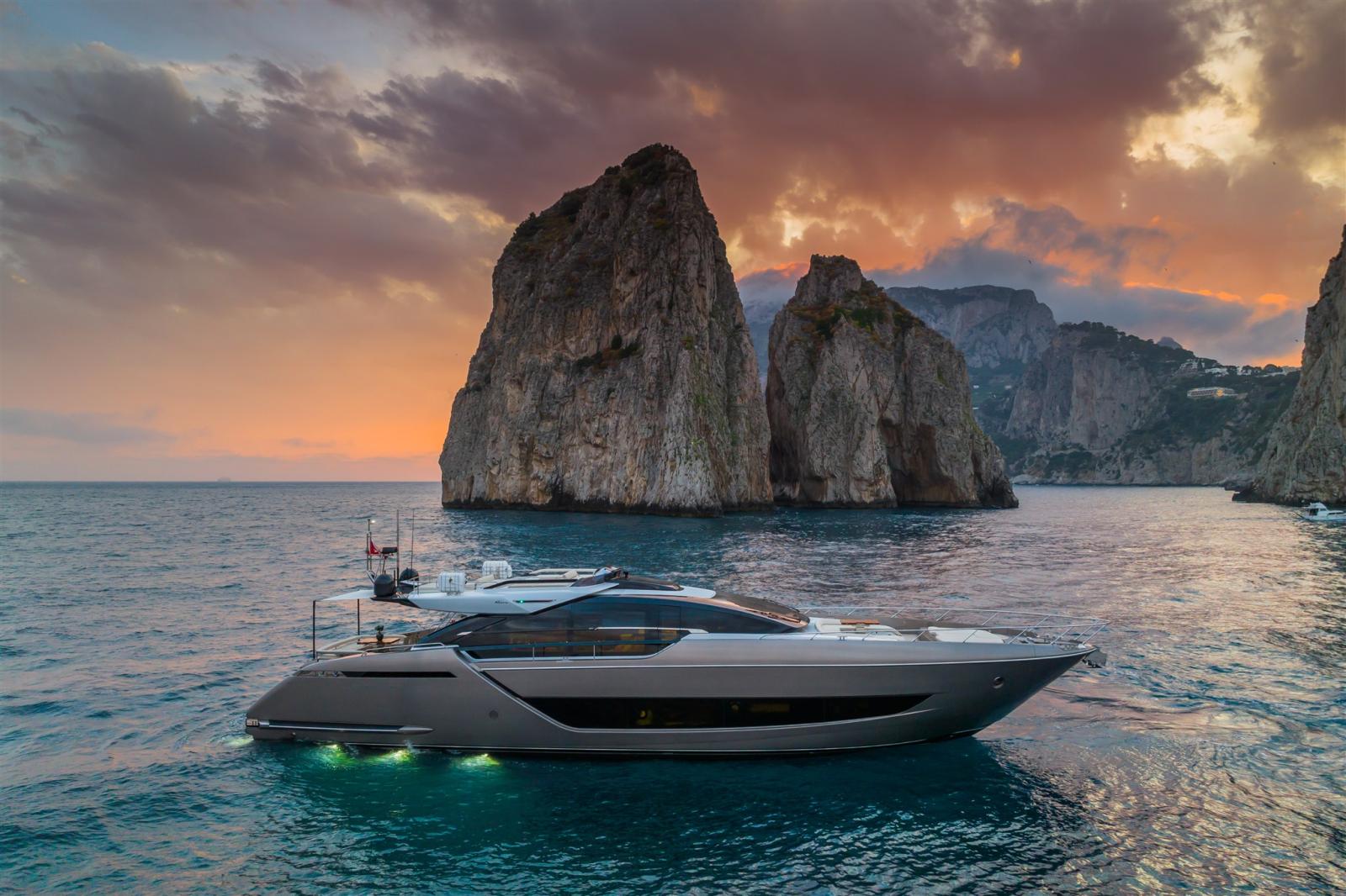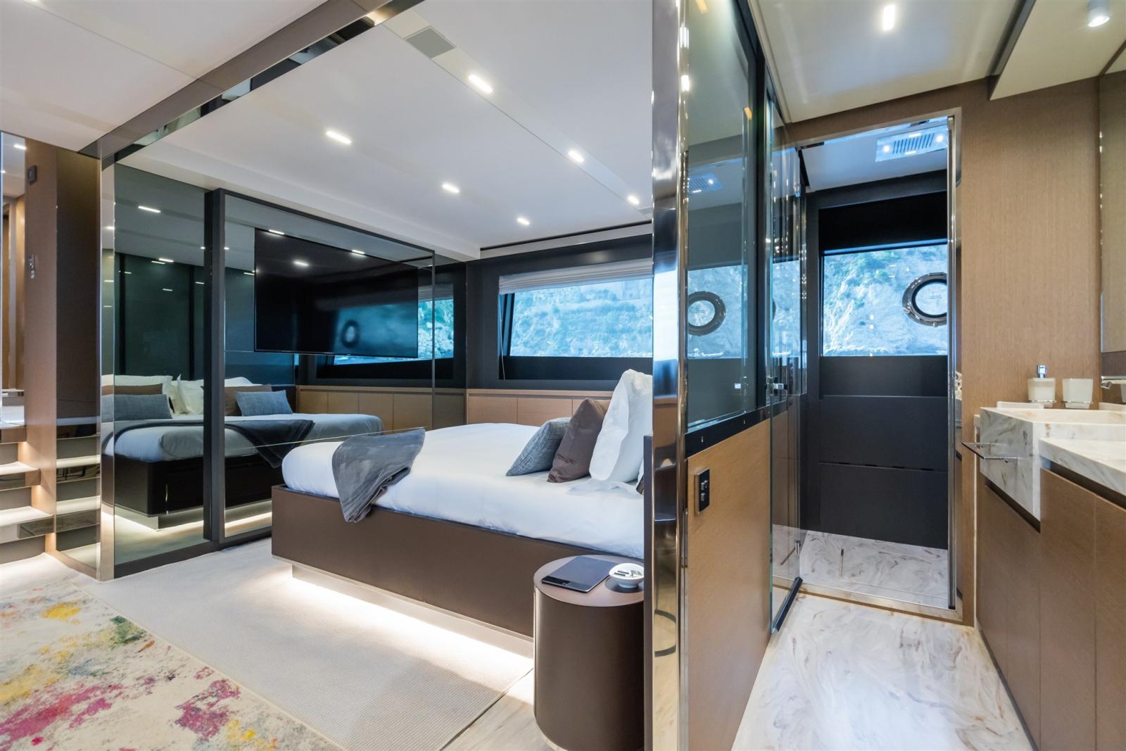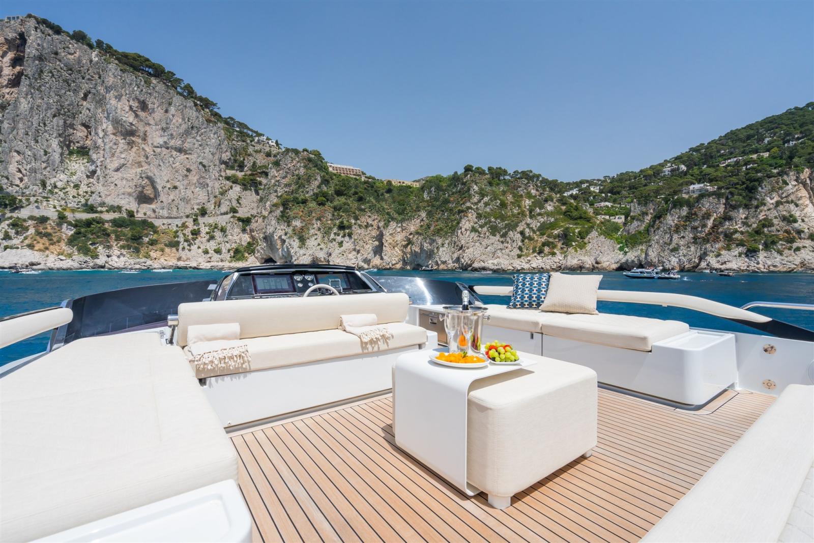 Satellite TV antenna (KVH TV6 TV SAT), Satellite Decoder, TV Ready (Sistema Sofabaton), Hi-Fi (Sonance - Premium Sound per esterni con altoparlanti HQ e AirPlay automatico/indipendente su prua, pozzetto e flybridge).