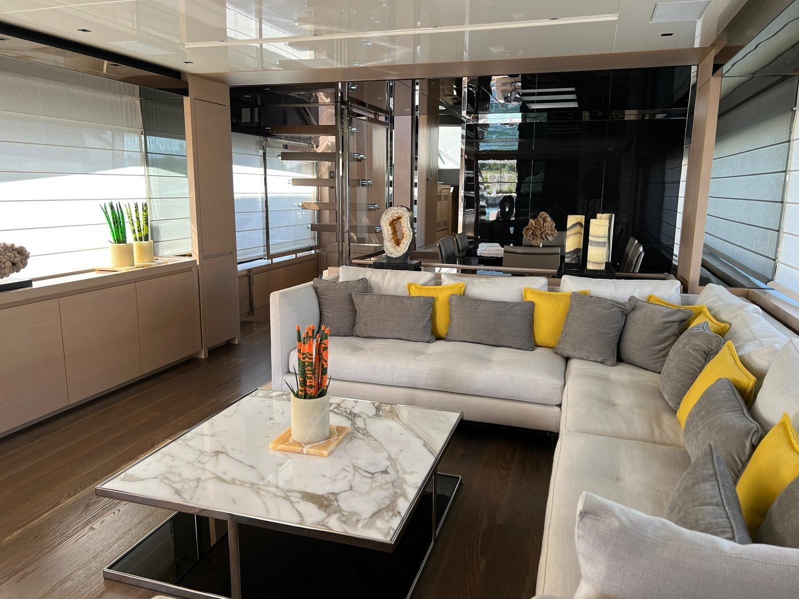 - Stern fly, 4 sofas have been placed across the entire width