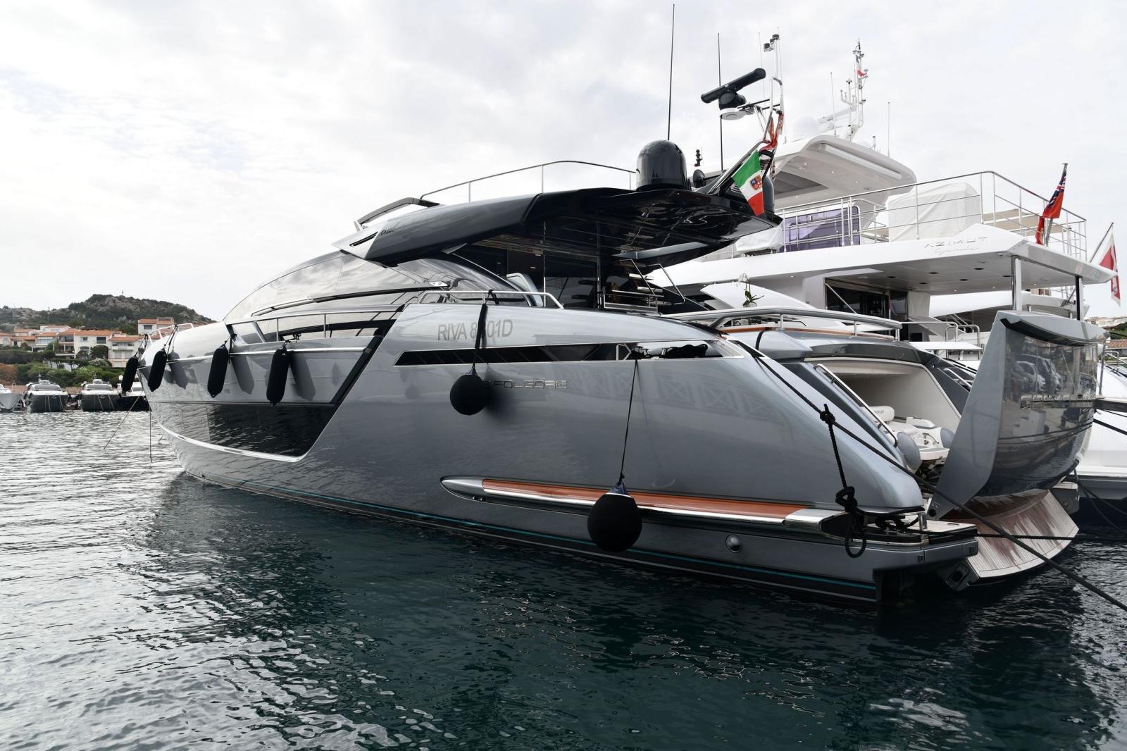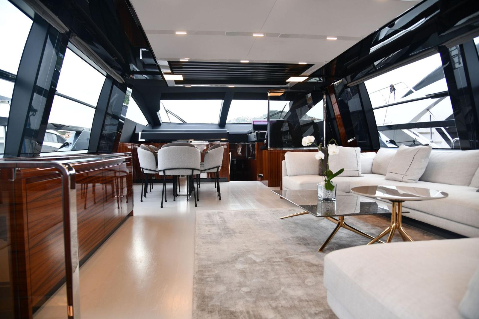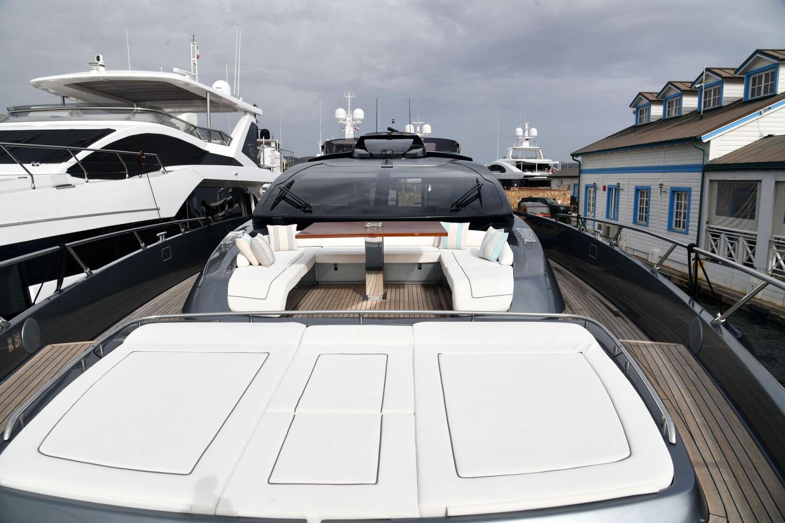 Water pressure pump, 2 Folding cleats (da ormeggio addizionali), Guard rail, Safety rail, Deck Shower, Twin Steering, Tender Garage, Washbasin in the cockpit, Underwater lights, Gangway, Automatic Bilge Pump, Shorepower connector, Water harbor connector system, Electronic instrumentation repeater (simrad in crew dinette), Electric Windlass, swimming ladder, Stabilizers (di assetto), cockpit table, Horn.