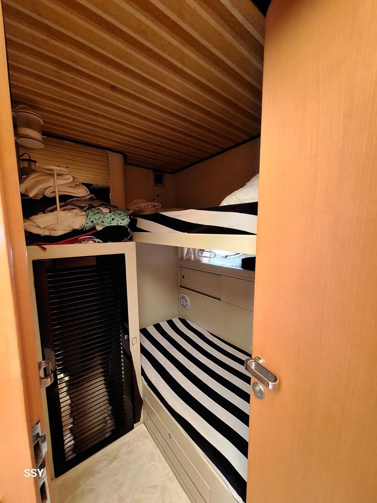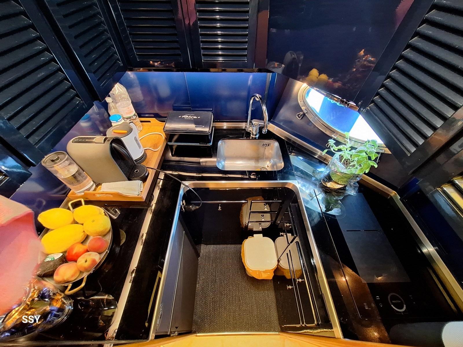 Anchor (Bruce + musone in acciaio inox), Battery charger (Quick SBC 1450NRG 60A/24V + generatore Quick SBC 300NRG 30A/12V), Secondary Propeller, Directional Spotlight (faro di ricerca elettrico Sanshin), Gangway (idraulica telescopica Besenzoni 300Kg + telecomando con bluethoot), Electric Windlass (Lofrans’ Falkon 1500W/24V), cockpit table (in teak massello).