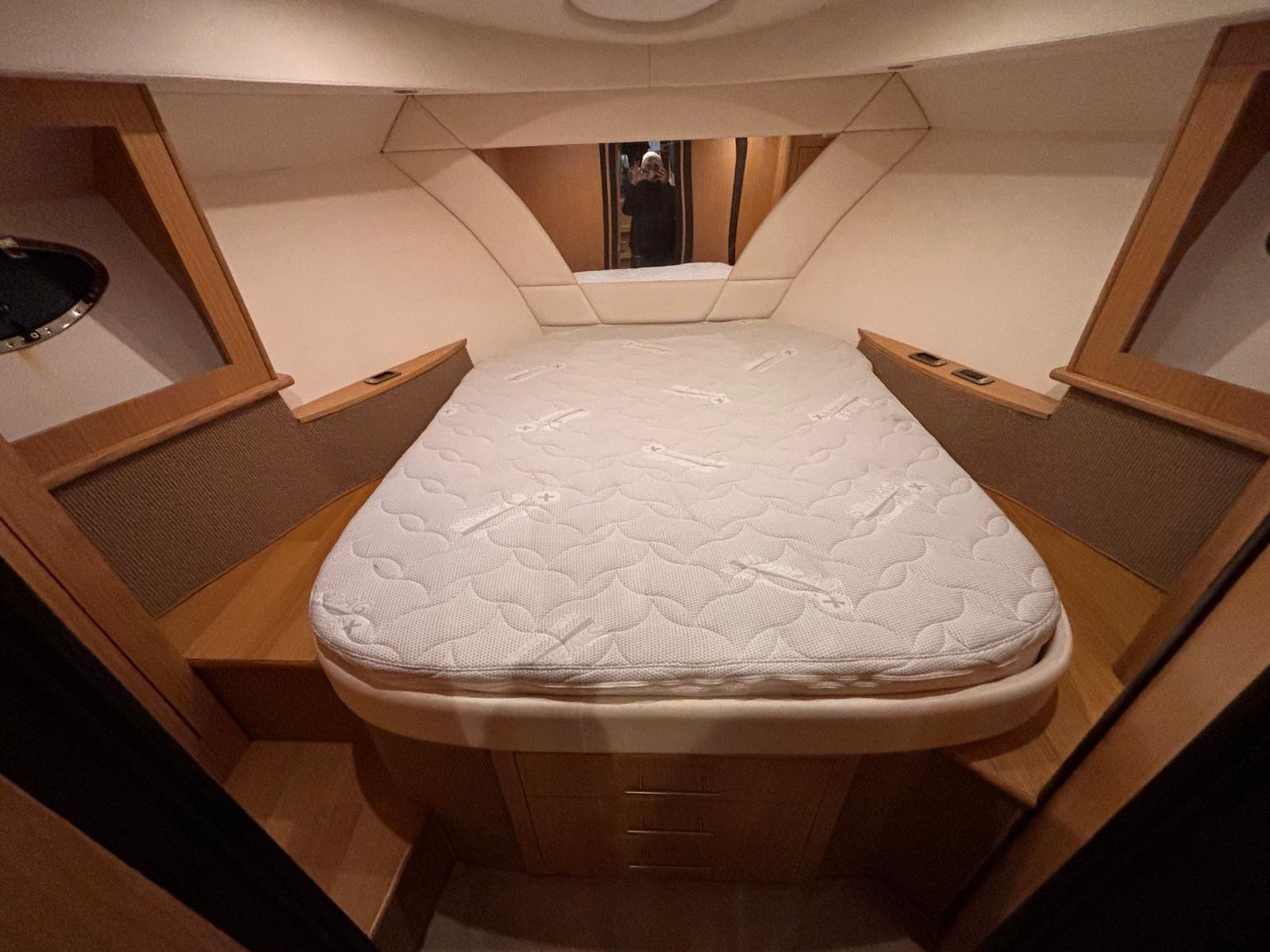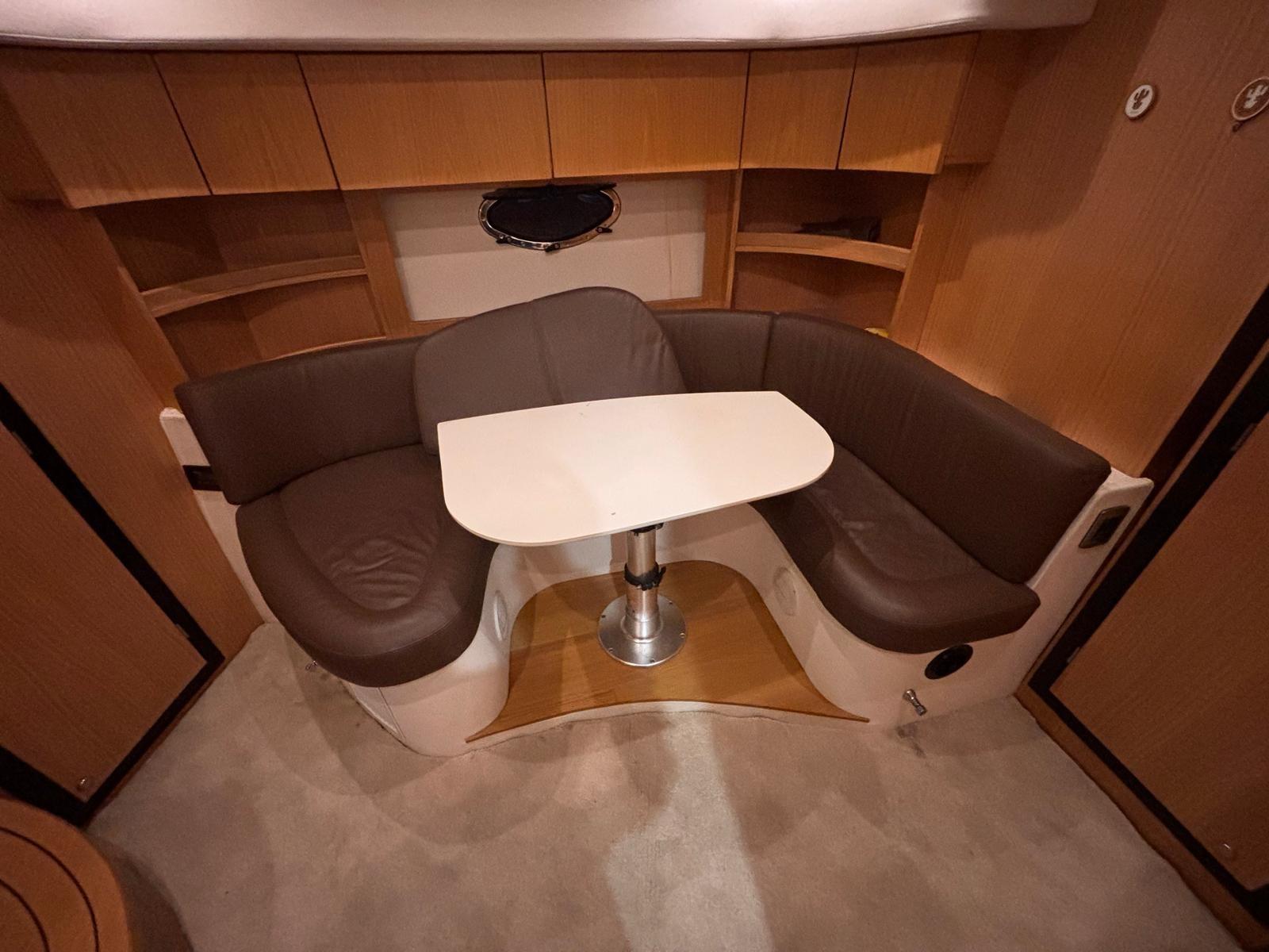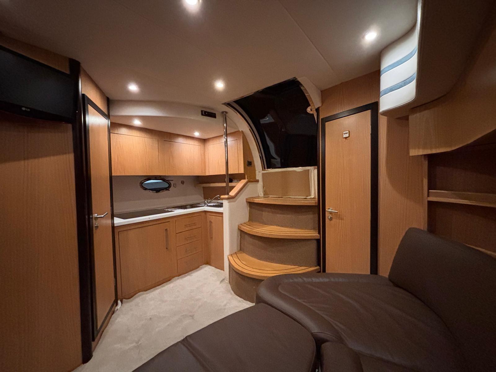 Accessories: Compass, chain counter, display, depth sounder, autopilot, plotter, VHF radio, anchor and chain, batteries, battery charger, bow thruster, electric flaps, gangway, electric bilge pump, 220v socket, electric windlass, swimming ladder, air conditioning, stereo and speakers, internal kitchen, stove, internal refrigerator