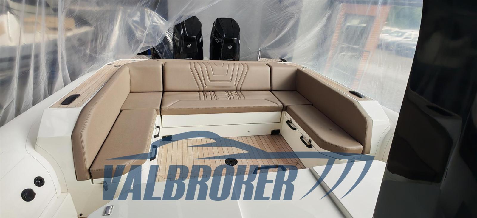 Opening compartment in the bow with crew cabin (mattress and USB sockets). Colour WHITE. 2x400HP Mercury V10.