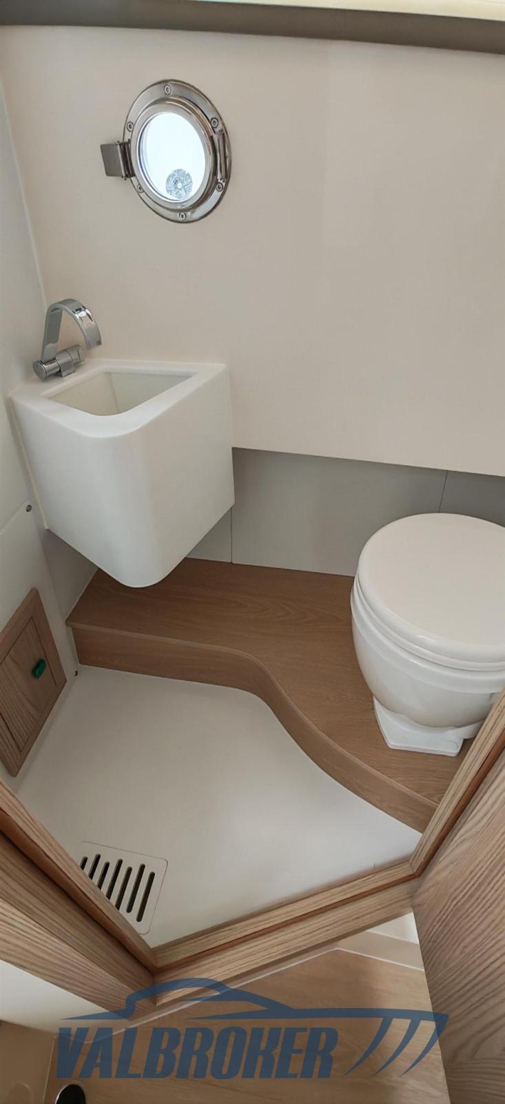 Anchor (inox ULTRA 8 kg 40m catena), Water pressure pump, 4 Batteries, Folding cleats, Battery charger (Victron), Deck Shower, Underwater lights, Electric Windlass, swimming ladder, T-Top (con protezioni laterali).