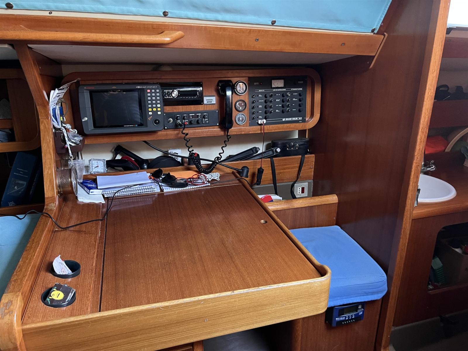 Odometer (RAYMARINE), Depth Sounder (RAYMARINE), Log (RAYMARINE), Autopilot (RAYMARINE), Plotter with GPS antenna, VHF Radio (SHIPMATE RS 8000), Wind Station (RAYMARINE).