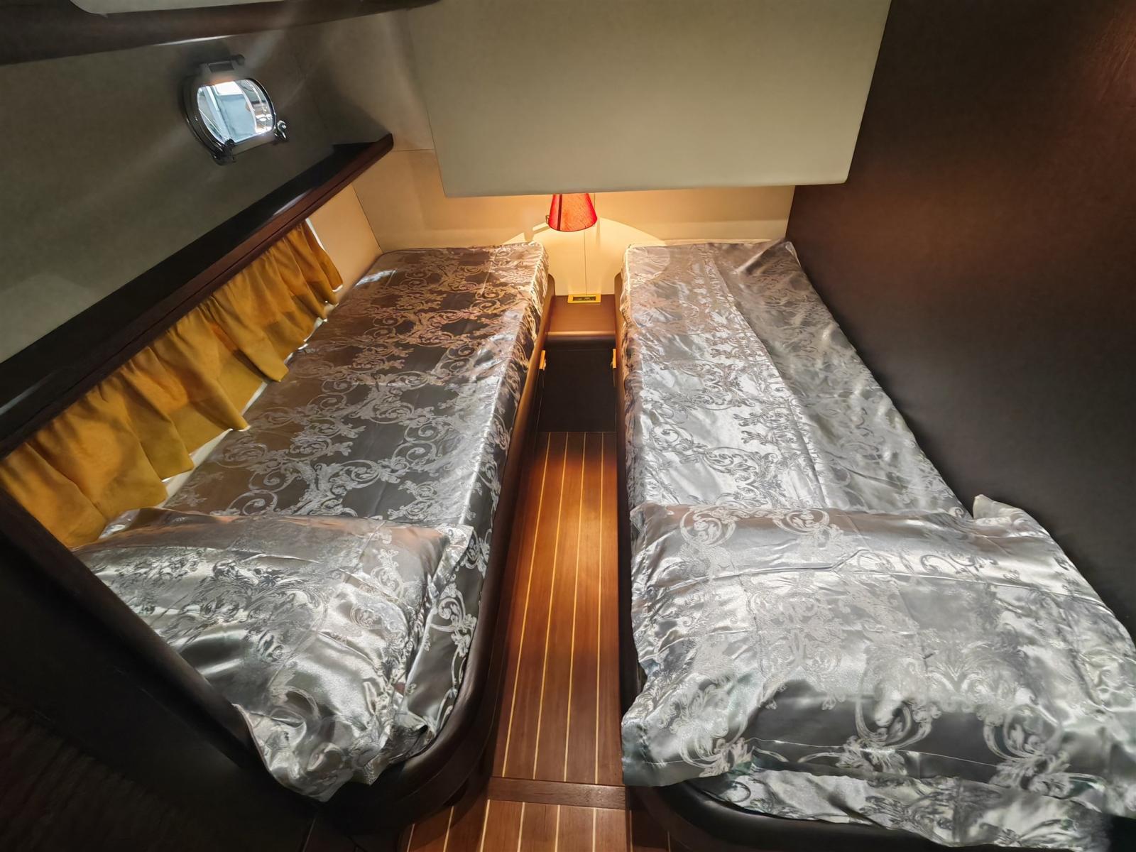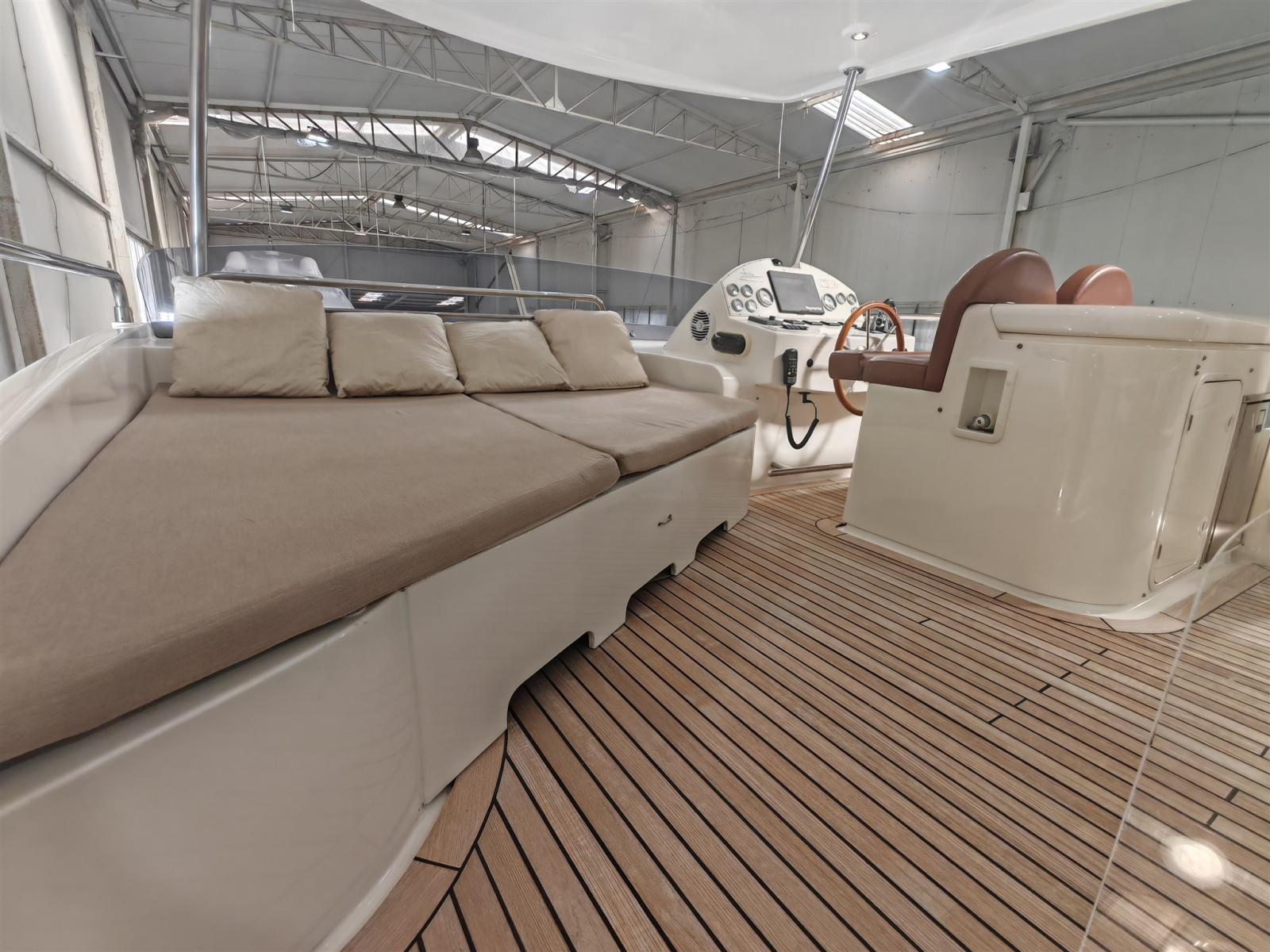 Engine Alarm, Bilge Alarm, Water pressure pump, 4 Batteries (agosto 2023), Teak Side Decks, Deck Shower, Twin Steering, Directional Spotlight, Hydraulic Flaps, Fire Extinguishing System, Flaps Indicators, Courtesy Lights, Gangway, Platform (in teak abbatibile), Entry door (con apertura totale), Side door, Teak Cockpit, Shorepower connector, Voltage Rectifier, Electric Windlass, swimming ladder, cockpit table, Horn, T-Top (in vtr sul fly), 2 Winch Electric.