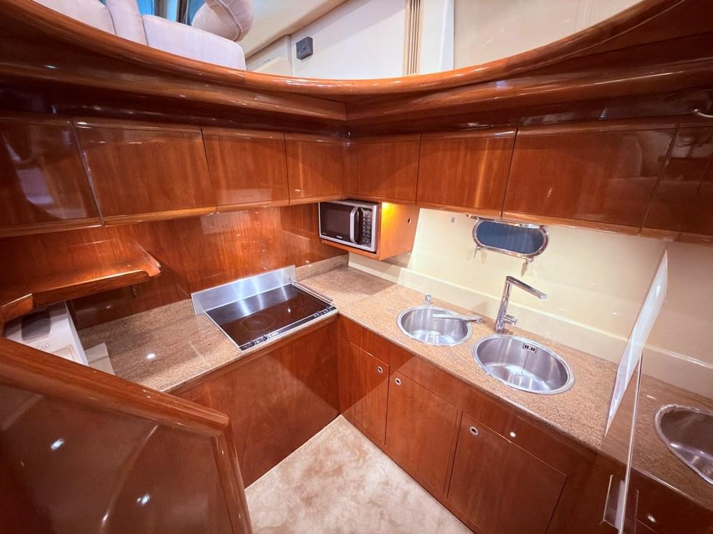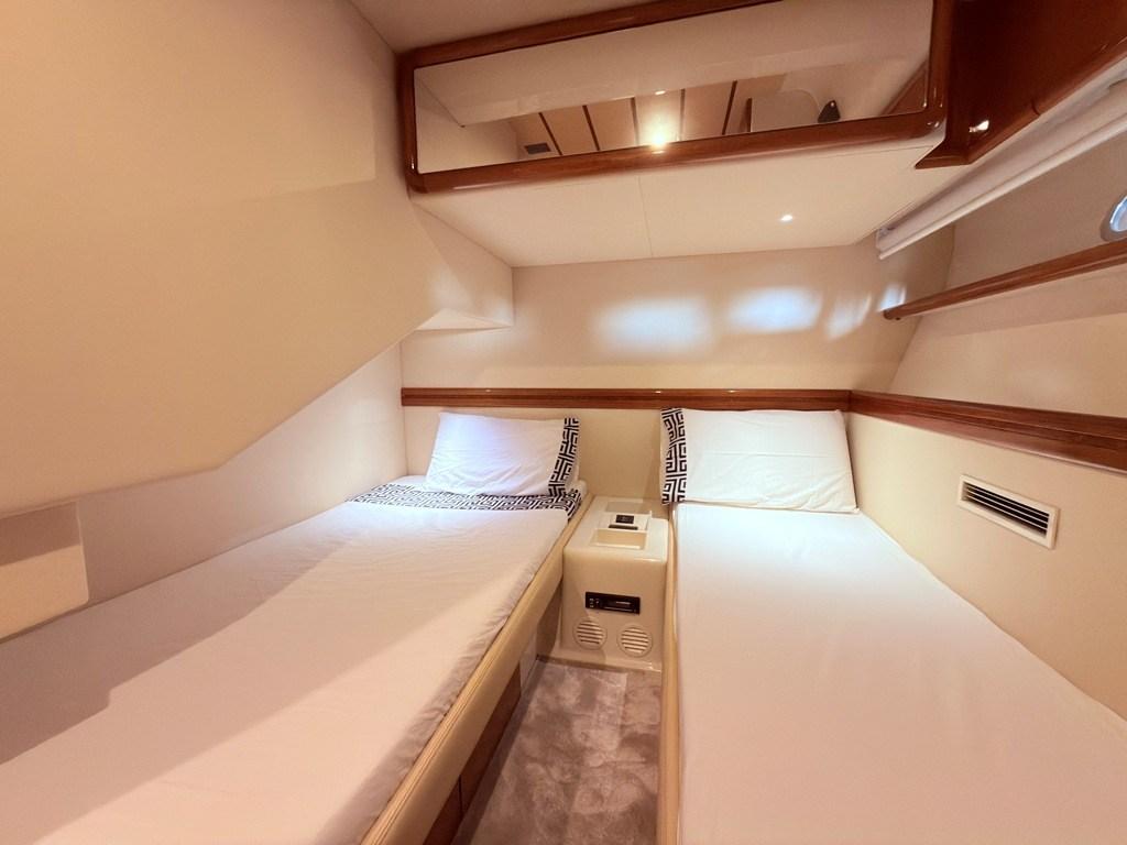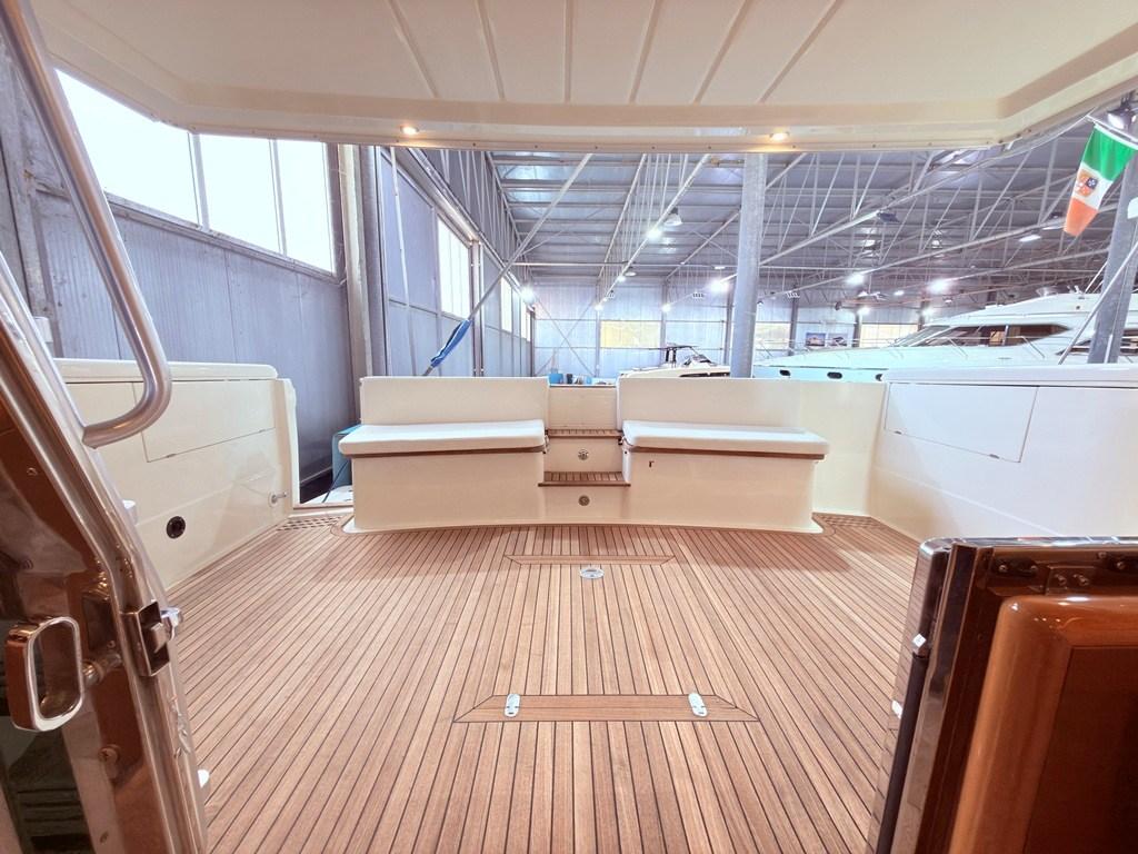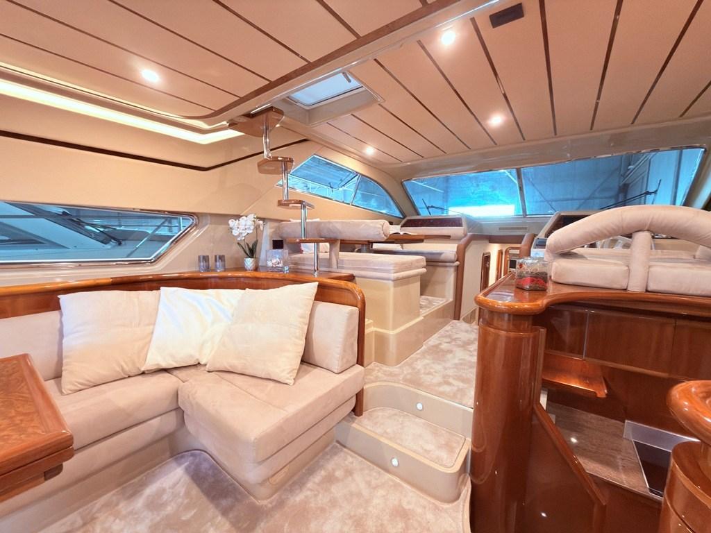 Engine Alarm, Bilge Alarm, Anchor (Catena in acciaio), Water pressure pump, Batteries (2024), Shore power cable, Stern Thruster (2025 Max Power), Bow Thruster (2025 Max Power), Hydraulic Flaps, Fire Extinguishing System, Flaps Indicators, Anchor Chain Washdown, 2 Washbasin in the cockpit (Acqua dolce e salata), Courtesy Lights, Underwater lights, Gangway (idraulica 350 Kg), Platform (di poppa in Vetroresina), Seawater Pump, Teak Cockpit, Shorepower connector, Water harbor connector system, Voltage Rectifier, Electronic instrumentation repeater (Display maxi Garmin), Rollbar, Electric Windlass, swimming ladder, Saddles for tender, 2 Winch, 2 Stern Winches, Bow Winches.