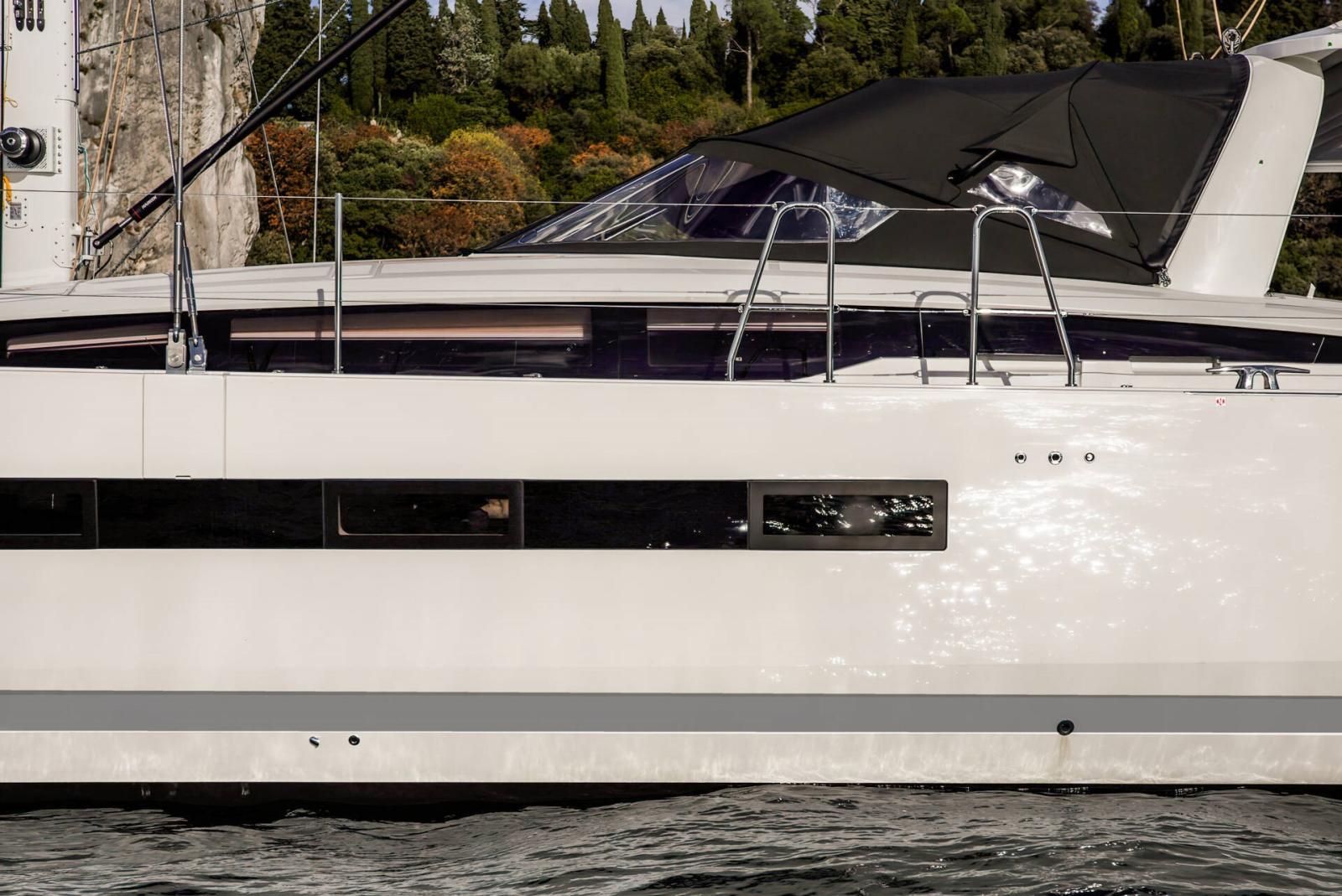 Alternator, Trailer, Twin Steering, Wind Generator, Crane, Tender Crane, Solar panels, Platform, Manual Bilge Pump, Teak deck, Shorepower connector, swimming ladder, Stabilizers, cockpit table, Tender, Winch Hydraulic.