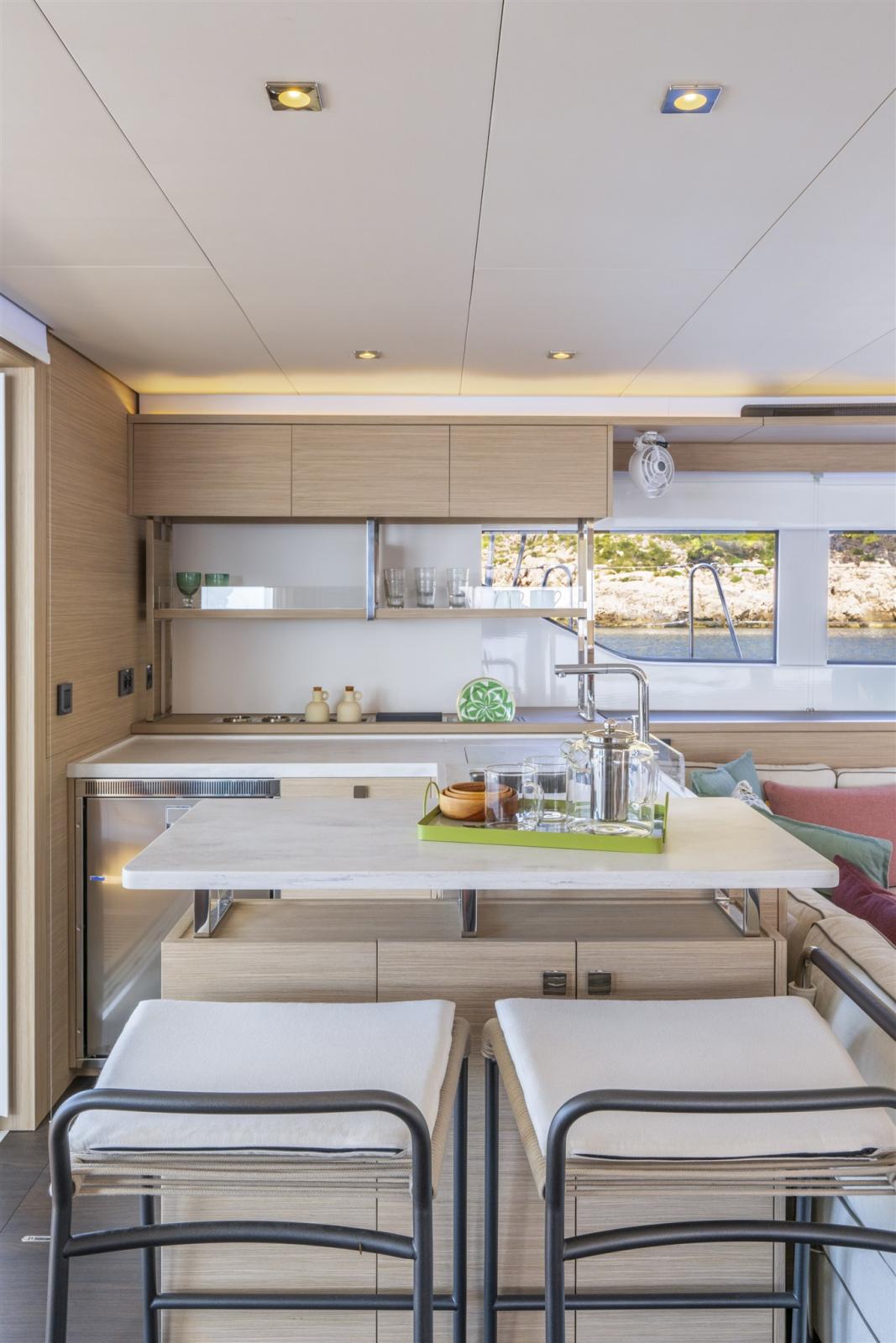 The Lagoon 60's aft cockpit is completely open to the sea and offers exceptional freedom of movement. The open terraces offer direct access for swimming. Designed to become your preferred living space, the aft cockpit benefits from safety and easy access through slightly angled steps.