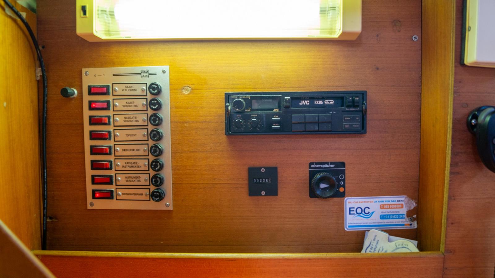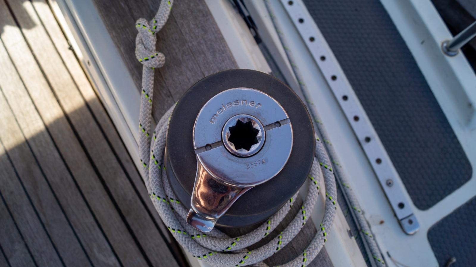 Anchor (Danfort anker gegalvaniseerd), Shore power cable, Guard rail, Safety rail, Anchor mount (Lijn en ketting), Fenders, Teak Cockpit, Shorepower connector, swimming ladder, cockpit table, 3 Winch (handmatig bediende lieren).