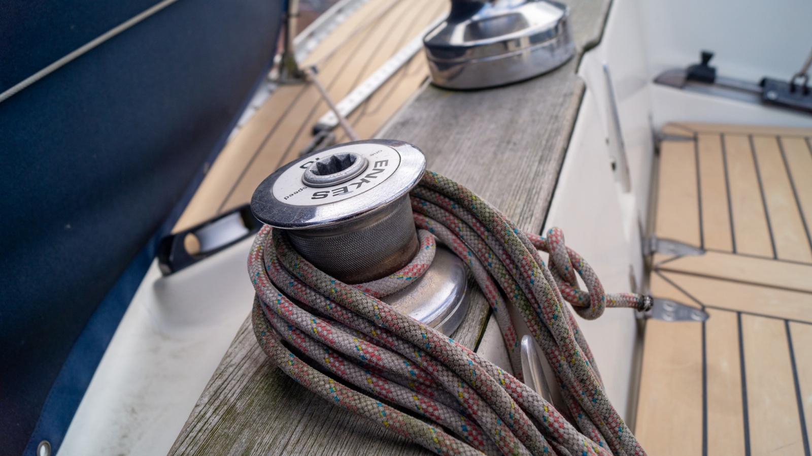 Anchor (2 stuks boeg en hek anker), Water pressure pump, 3 Batteries (2 service accu's + 1 start accu), Shore power cable, Safety rail, Anchor mount (Ketting), Fenders, Deck Wash Pump, Teak deck, Teak Cockpit, Shorepower connector, Electric Windlass, swimming ladder, cockpit table, guard rails with gates, Winch (Handmatige lieren).