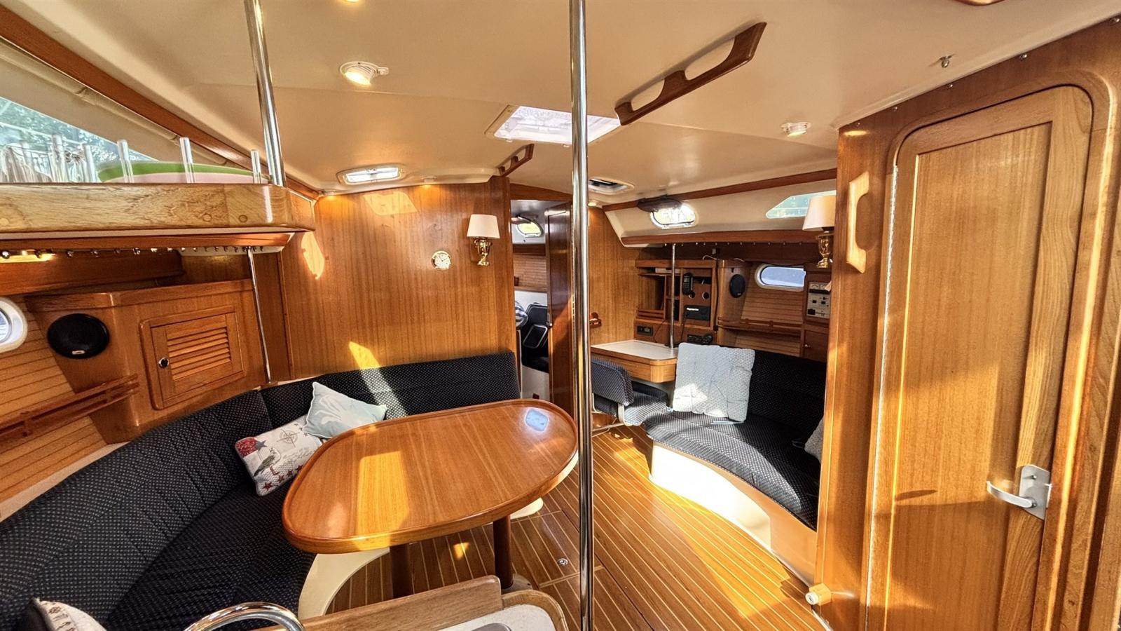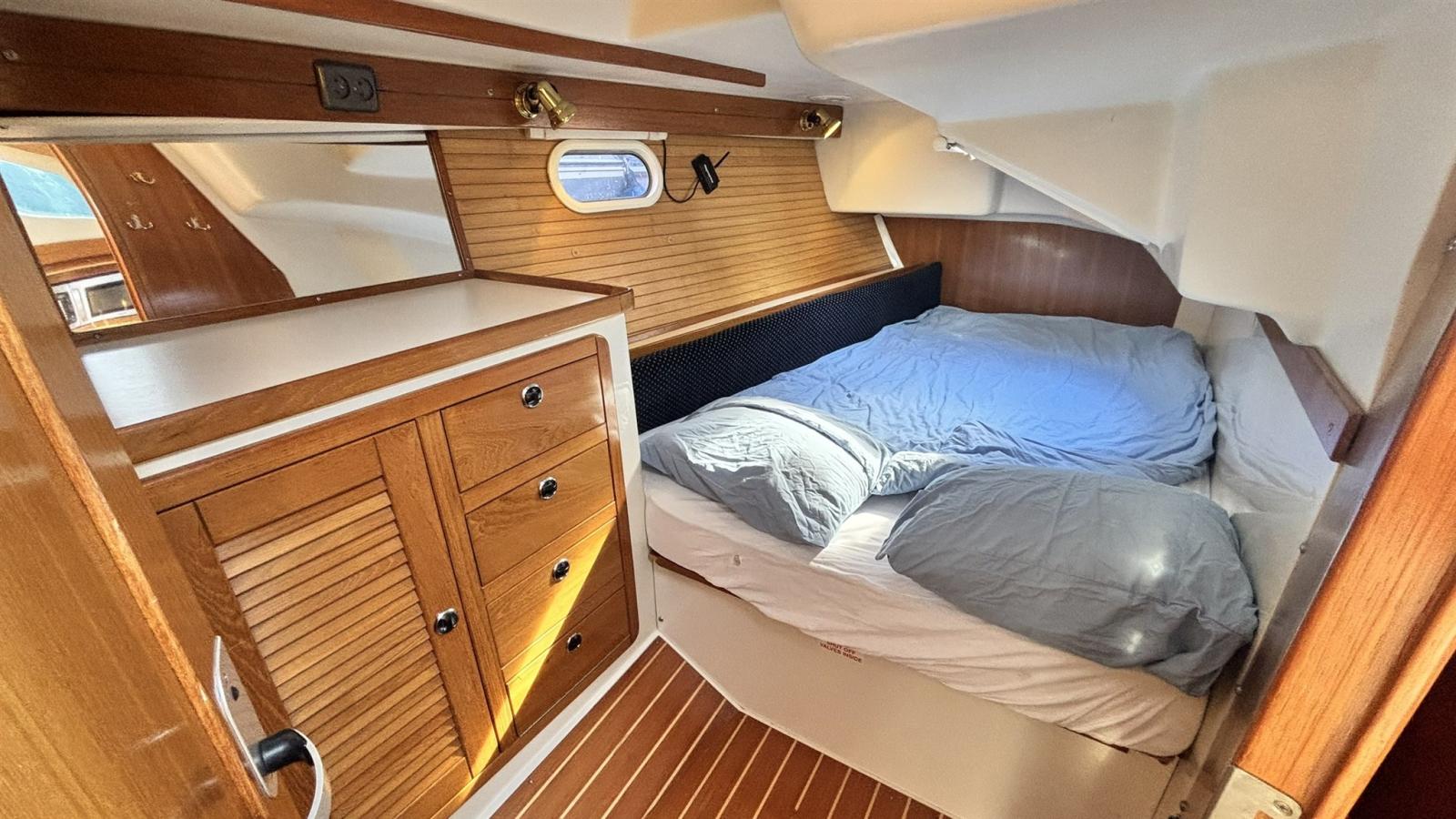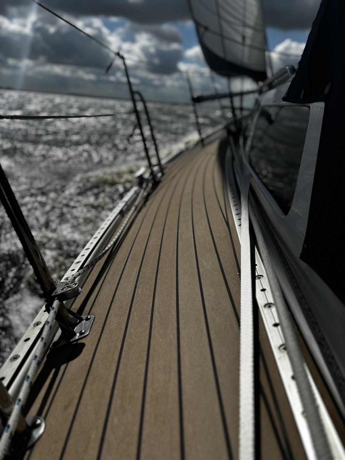 The mainsail was renewed in (2022) by a full radial laminate sail with 3 reefs, also the standing and running rigging and the halyard stoppers were replaced in (2023). The deck received a completely new plastic TopDek in 2024 and the equipment on board is modern and complete, including a heater (2023), boiler (2021), renewed toilet (2025) and a spacious battery bank 696 AH from (2020) with Victron monitor. For the drive, the propeller shaft, water barrier and MaxProp propeller have been renewed in (2022).