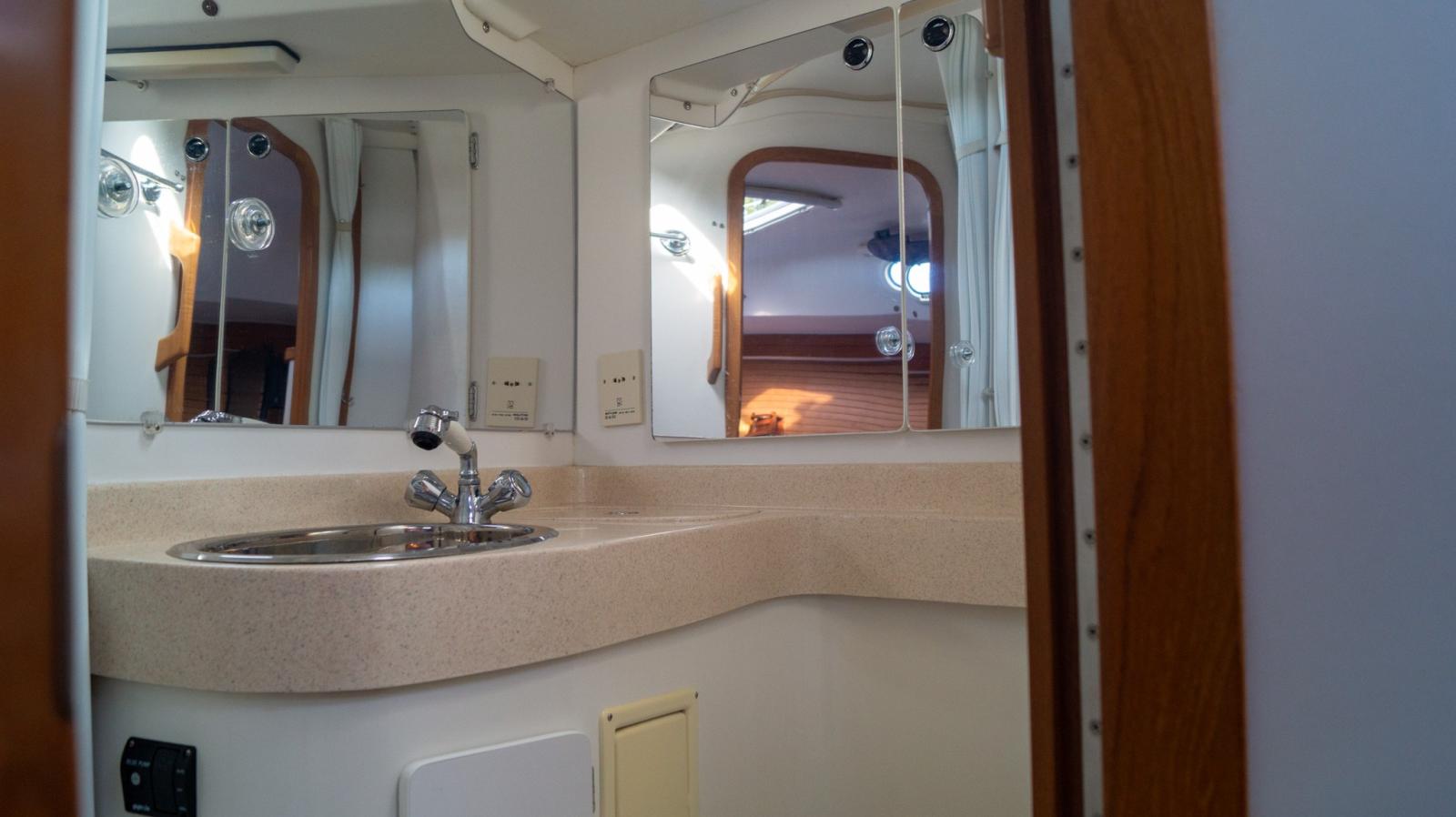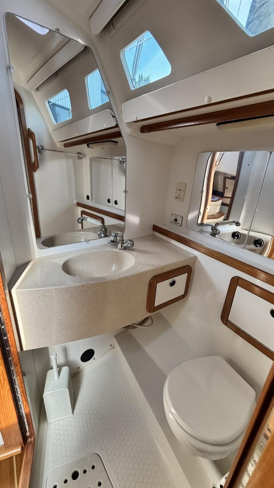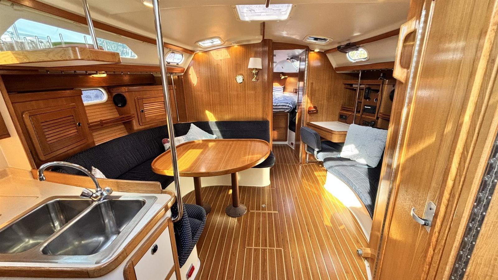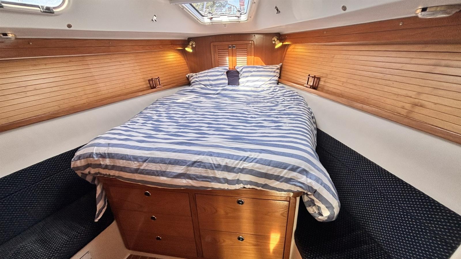 The mainsail was renewed in (2022) by a full radial laminate sail with 3 reefs, also the standing and running rigging and the halyard stoppers were replaced in (2023). The deck received a completely new plastic TopDek in 2024 and the equipment on board is modern and complete, including a heater (2023), boiler (2021), renewed toilet (2025) and a spacious battery bank 696 AH from (2020) with Victron monitor. For the drive, the propeller shaft, water barrier and MaxProp propeller have been renewed in (2022).