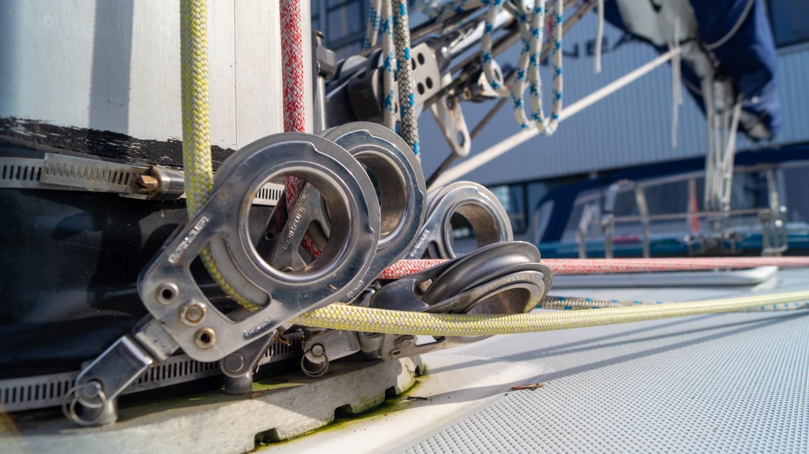 Gennaker equipment, Spi Equipment, Jib Furling System, Bowsprit (Vast), Ball bearing slider mainsail (Bovenste 2), Lazy Jack, Genoa reefing system, Mainsheet traveller, Rod Kicker, Vang.