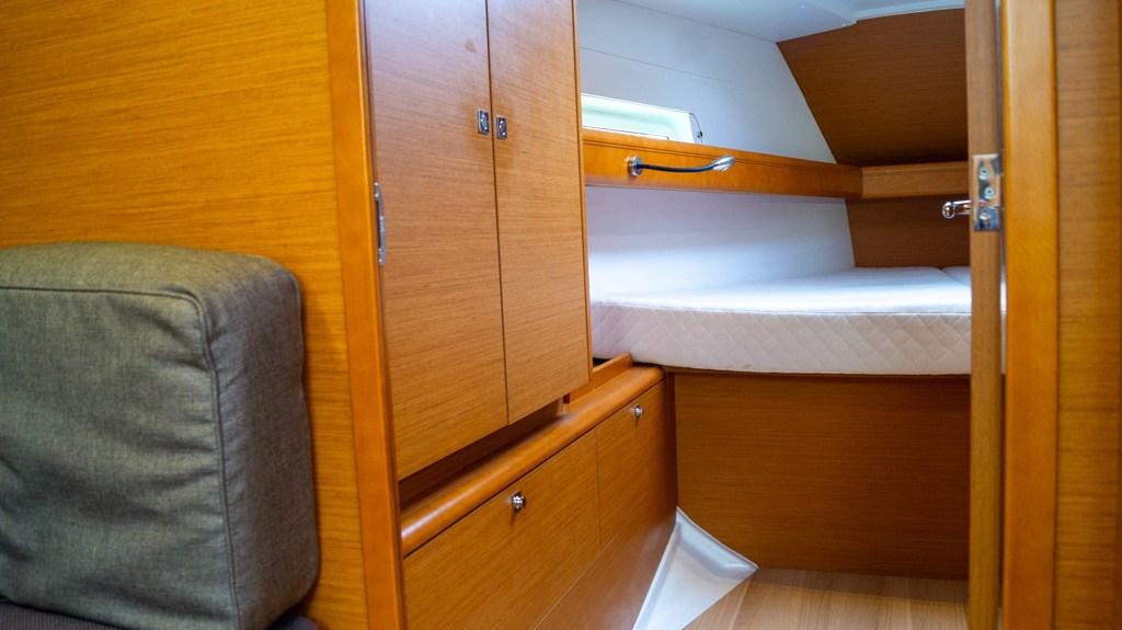 The ship is equipped with a membrane mainsail and genoa, both only two seasons old. These tarpaulins offer significant added value: thanks to the advanced membrane technology, they are lighter, stiffer and retain their shape better under load. This ensures more speed, better manoeuvrability and optimal sail trim, both during sporty club racing and during relaxed trips.
