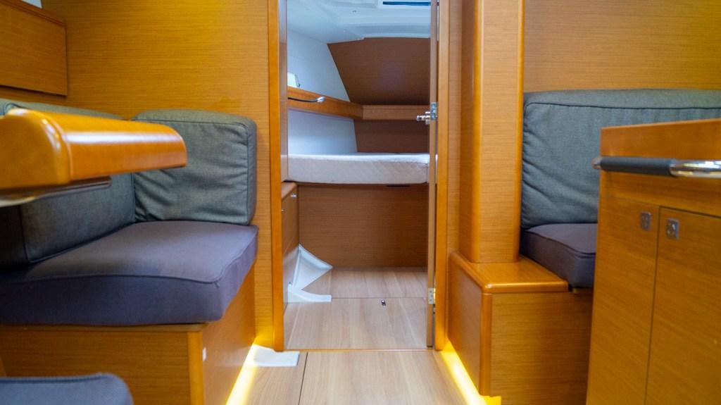 From club racing to cruising, this Jeanneau Sun Odyssey 419 is ideal for all conditions. The design, created by Philippe Briand, has a hard kink in the aft part of the hull which significantly increases stability and sailing performance, while creating extra volume in the aft cabin. The Jeanneau Sun Odyssey 419 offers a bright, spacious and contemporary interior. With 3 cabins, the boat is ideal for overnight stays with several people on board.