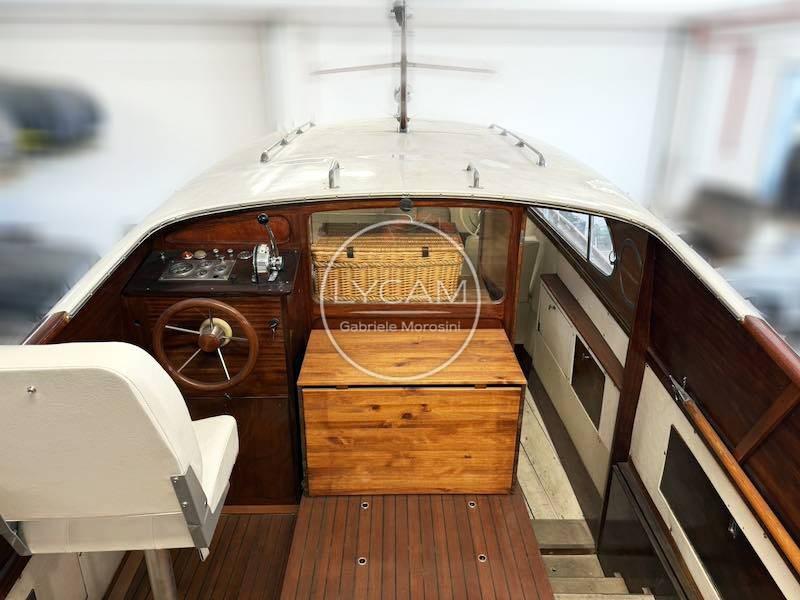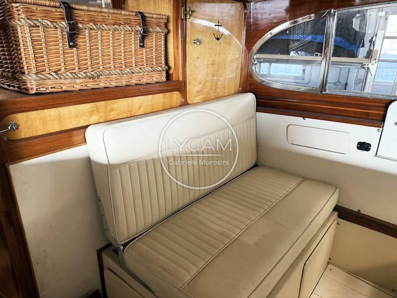 Internally, along the port side is the dinette with table and seats opposite. On the opposite side there is the internal wheelhouse while, proceeding towards pure, you descend further into a small cabin.