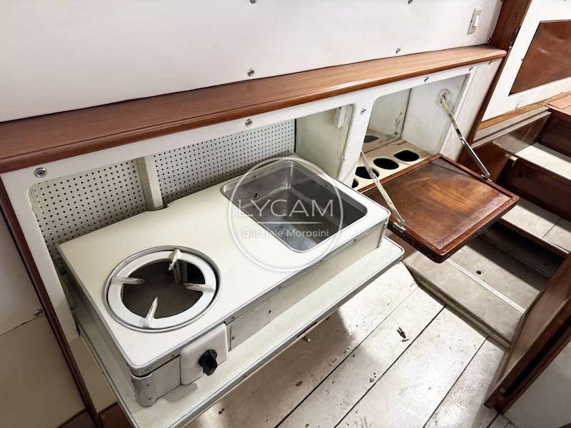 Navigation lights, Anchor light, Mooring bollards, Wooden tree; Flagpole; Teak cockpit; Teak aft bridge; Swim ladder; Cockpit shower; Roller still in steel; Trumpet; Adjustable headlight; Half-sailor; Dinette cushions; Batteries; Charger