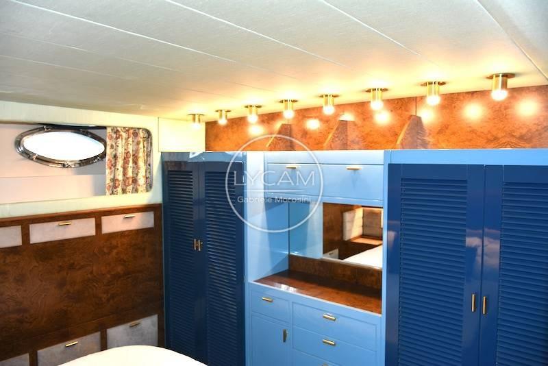 Total overhaul of the boat and kept original in every detail, engines landed and refurbishment at zero hours by the Man workshop, engines to be broken in, new engine room insulation, washing of diesel and water tanks, replacement of bilge pumps and WC macerators, balancing of axles and propellers, replacement of saloon and cabin ceilings, internal saloon curtains and bulkheads, windshield wipers, Horns, seacocks, axle bushings, new fire extinguishing system.