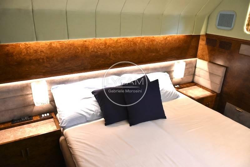 Below deck: 1 aft double owner's cabin with separate bathroom, 1 double forward guest cabin with separate bathroom, 1 guest cabin with 2 single beds and bathroom, 2-crew cabin;