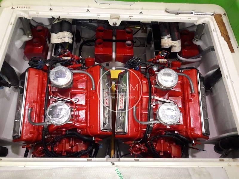 This MC30 is equipped with two BPM Vulcano 375 hp petrol engines, the maximum power available at the time of production of the Offshorer (only 4 out of 343 were factory equipped with BPM Vulcano). This engine is 30% lighter, thanks to many aluminum parts, and 30% more powerful than the most popular Mercruiser engines (also used on the Riva Aquarama).