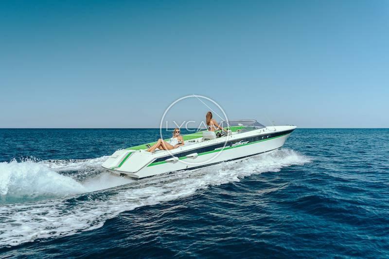 The unmistakable MonteCarlo Offshorer logo strongly evokes the concept of speed and at the same time recalls the glittering years of the "Dolce Vita" on the Côte d'Azur. Today it is still considered one of the most elegant boats ever designed with the hull and waterlines that are still considered the best ever designed today, allowing for great maneuverability, seaworthiness and very high speeds even in rough seas.